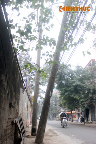 Nhiều cột điện đang trong tình trạng bị siêu vẹo ra phía đường, thậm chí có cột nghiêng đến khoảng 30 độ...