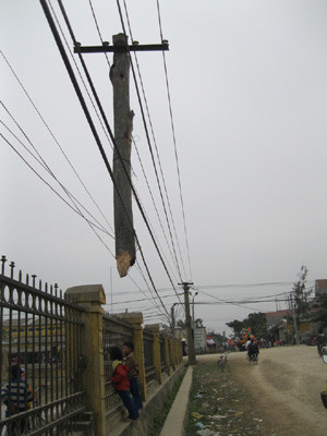 Cột điện treo lơ lửng, phía trên là dây điện. Mặc dù nó nằm trên trục đường chính của xã, gần sân bóng, và sát đó là con đường lớn của xã nhưng nhiều người qua đường không để ý, có người thấy nhưng vẫn… kệ. Cột điện nằm gần trường tiểu học và sân bóng của xã nên hằng ngày có khá nhiều người nhất là học sinh, ra đây để chơi thể thao.