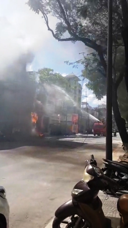Vị trí xảy ra cháy lớn gần đối diện với một trung tâm thời trang và salon làm tóc, cạnh địa chỉ 48A Bến Nghé, Huế.