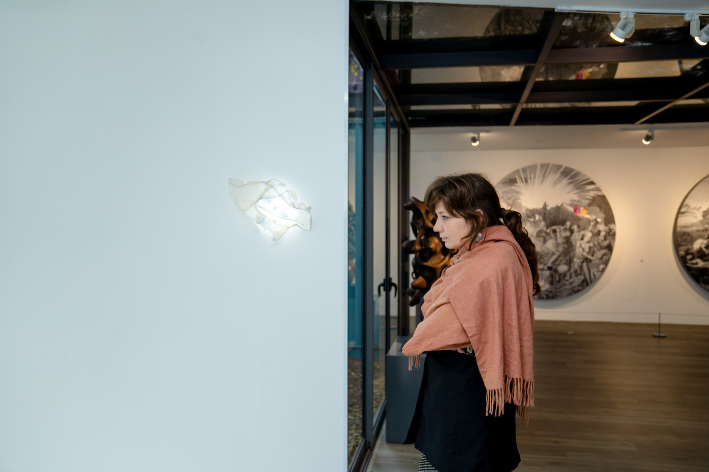 Chị Trinh cũng đánh giá cao việc phòng tranh sử dụng dây thép nhỏ để tạo một khoảng cách nhất định giữa công chúng và tác phẩm. Đây là điều mà nhiều bảo tàng, phòng triển lãm tại Việt Nam hiện giờ chưa áp dụng. Chi tiết nhỏ này giúp tác phẩm có không gian riêng, như thể bước lên một sân khấu nữa ngoài không gian trưng bày. Chị Trinh cho rằng đây là một động thái thể hiện sự chuyên nghiệp đồng thời cũng giúp công chúng hiểu được cần phải dành sự tôn trọng cho tác phẩm nghệ thuật.