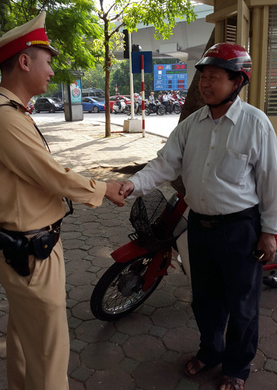 “Thấy em học sinh nhăn nhó kêu đau và nói là sợ muộn giờ thi, tôi gọi ngay cho 2 chiến sỹ của đội CSGT số 2 đang làm nhiệm vụ gần nhất đến giải quyết và đưa em đi thi kịp thời” - Thượng úy Cường cho hay.