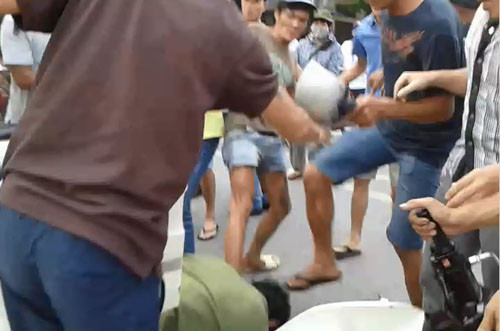 Quá bức xúc, một số người dân đã phá cửa xe tải, lôi lái xe ra đánh. CSGT phải can thiệp để bảo vệ tính mạng lái xe. Trên xe tải, ngoài lái xe còn có một phụ nữ tự xưng là chủ hàng.