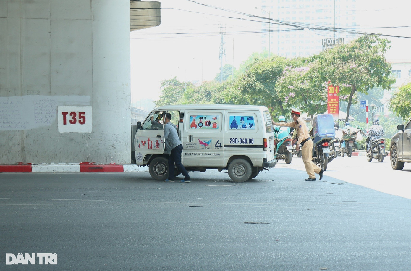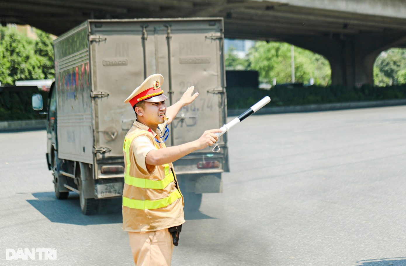 Trưa cùng ngày, khi nắng nóng lên đỉnh điểm, Thượng tá Nguyễn Chí Công, Phó Trưởng phòng CSGT Hà Nội đã đi thăm, động viên các chiến sỹ Đội CSGT đường bộ số 6 và số 14 đang "cắm chốt" thực hiện nhiệm vụ trên đường.