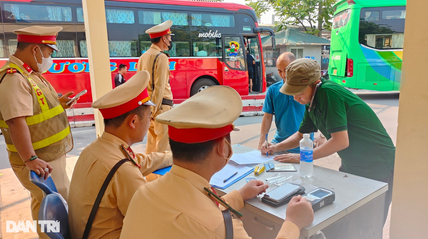 Cũng trong sáng nay, Đội CSGT đường bộ số 14 phối hợp với đội Cảnh sát giao thông - Trật tự Công an quận Hoàng Mai và Thanh Tra giao thông quận Hoàng Mai, Đội Cảnh sát điều tra tội phạm về ma túy Công an Quận Hoàng Mai, phòng Cảnh sát hình sự Công an Hà Nội... kiểm tra ma túy, nồng độ cồn trong hơi thở với các lái xe khách tại bến xe Giáp Bát.