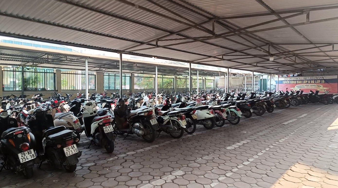Sau thời gian triển khai, tổ công tác tiếp tục phối hợp với Trường THCS - THPT Hà Thành (quận Bắc Từ Liêm) tuyên truyền Luật giao thông đường bộ cho các em học sinh. Khi kiểm tra nhà trông giữ xe của trường, tổ công tác phát hiện có rất nhiều phương tiện của học sinh gửi như Honda Vision, SH,... từ 110-150 CC.