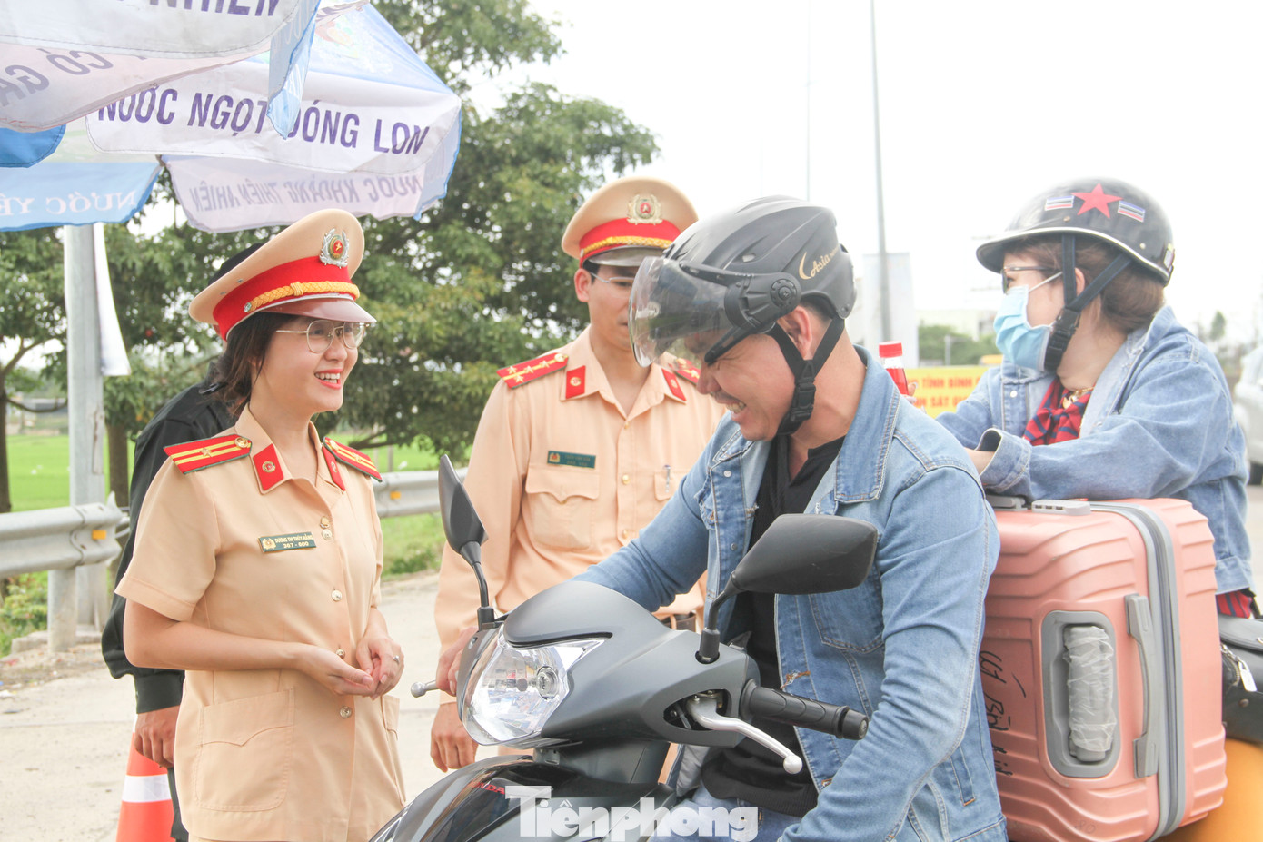 Đại úy Trần Văn Đến - Bí thư Chi Đoàn Phòng CSGT Công an tỉnh Bình Định cho hay, việc làm nhằm giúp người dân bớt phần mệt nhọc trên con đường quay lại thành phố, nơi làm việc.