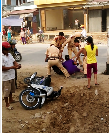 Tuynhiên, khi trao đổi với PV, ông Lê Đức Quyền, Đội trưởng Đội CSGT huyệnTĩnh Gia cho biết: “Sự việc xảy ra vào sáng ngày 6/7, khi tổ tuần tra đang làmnhiệm vụ thì phát hiện một thanh niên không đội mũ bảo hiểm. Các đồng chí CSGTđã yêu cầu đối tượng dừng lại xuất trình giấy tờ tuy nhiên đối tượng Sáng đãchống lại, không hợp tác. Trước hành vi trên buộc các đồng chí CSGT phải khốngchế, giằng tay, giữ đối tượng để đưa đối tượng và xe về xã để lập biên bản”.