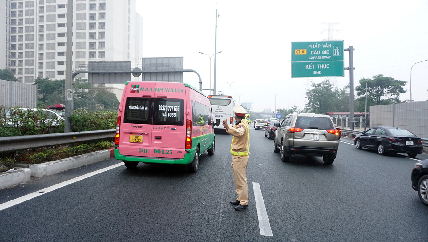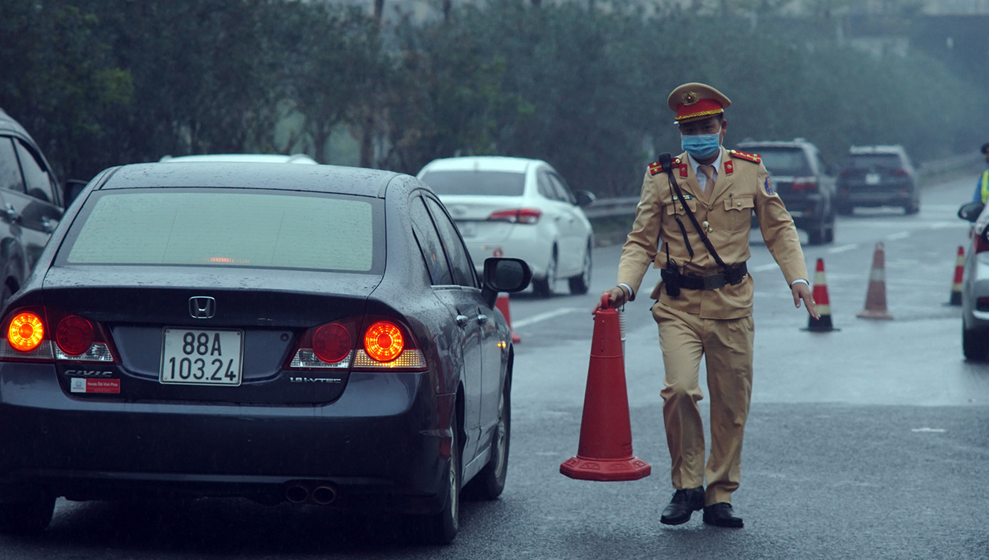 Cán bộ Đội Tuần tra kiểm soát giao thông đường bộ cao tốc số 3 (Phòng 8, Cục CSGT) cho biết, đơn vị đã huy động 100% quân số ứng trực tại các điểm vào cao tốc Pháp Vân - Cầu Giẽ - Ninh Bình để điều tiết, phân luồng phương tiện từ xa tránh ùn tắc.