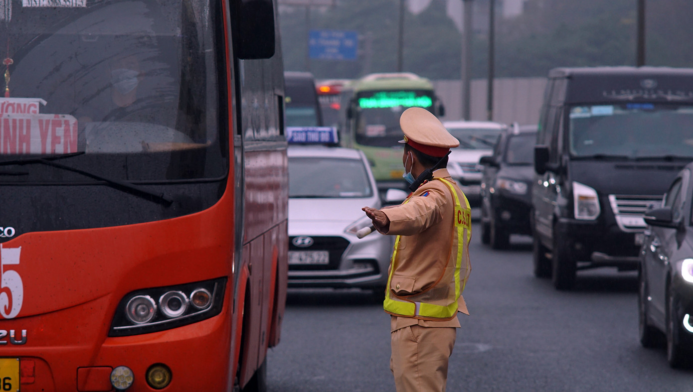 Một số tuyến đường trung tâm thành phố Hà Nội cũng xảy ra ùn ứ nhẹ tại các nút giao. Tại ngã tư Giải Phóng - Ngọc Hồi, lực lượng CSGT số 14 cho biết ứng trực từ 6h sáng đến đêm khi lượng phương tiện giảm.