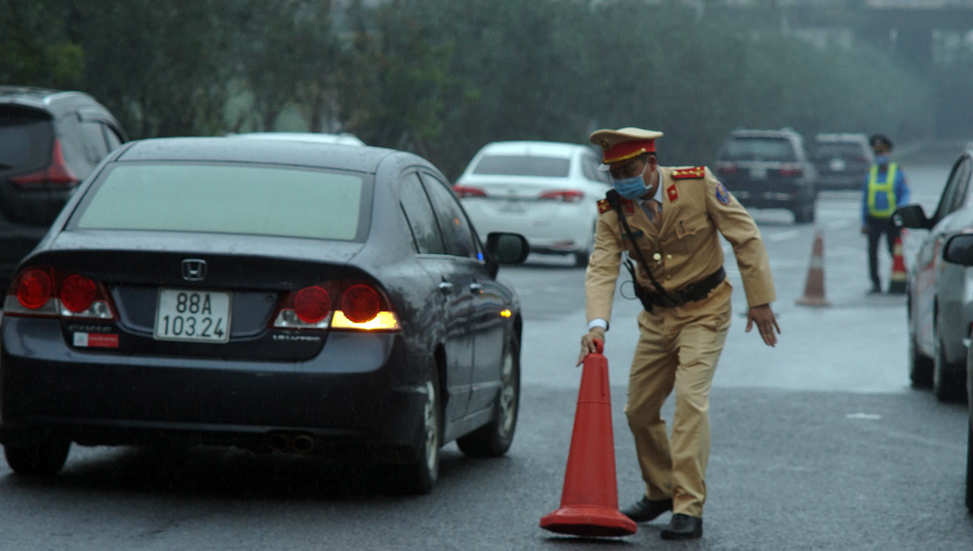 "Dự báo lượng phương tiện tham trở về Thủ đô sẽ không tăng như mọi năm do tình trạng dịch bệnh và người dân đã chủ động chọn thời gian và lộ trình nên không xảy ra ùn tắc" - cán bộ Đội CSGT số 14 cho biết.