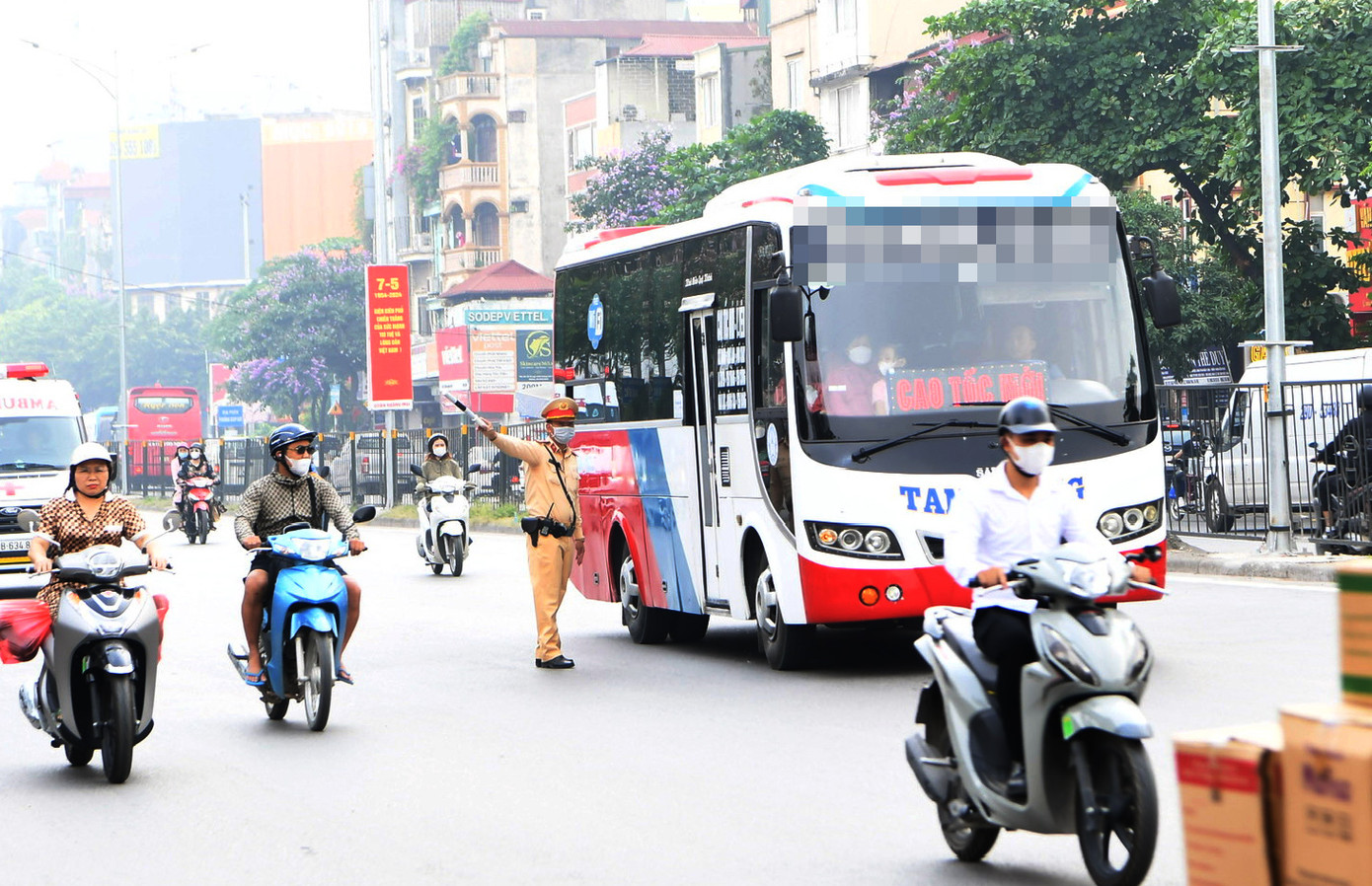 Khoảng 9h cùng ngày, tổ công tác Đội CSGT đường bộ số 14 lập chốt kiểm tra, xử lý tình trạng xe khách vi phạm lỗi dừng, đỗ, đón, trả khách trên tuyến đường Giải Phóng, hướng đi Ngọc Hồi.