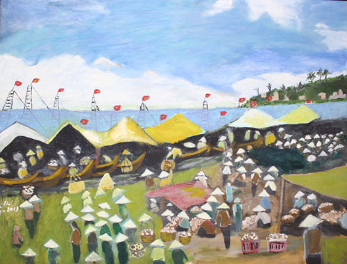 Bà tự nhận thích sống với hồi ức đẹp của thời niên thiếu nên tranh thường mang bóng dáng cảnh sắc, con người xứ Thanh - quê cha đất tổ của bà. "Tôi thường vẽ về xứ Thanh yêu mến của lòng tôi bằng những ký ức thời thơ bé. Đây Lạch Trường, kia Diêm Phố, Sầm Sơn, ngã ba Voi, 99 ngọn núi trùng điệp ở Đò Lèn, hay mái tranh nghèo những năm đi sơ tán. Bao nhiêu năm trôi qua, cảnh sắc đổi thay nhưng tôi vẫn nhớ rất rõ. Trong mắt tôi, chỗ nào từng đi qua cũng rất đẹp. Bọn trẻ bây giờ sống gấp nên bỏ qua rất nhiều thứ đẹp đẽ trên đường đi", bà nói.