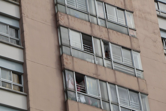 Ghi nhận tại hiện trường trong sáng 28/2 cho thấy tấm kính tại một căn hộ ở lầu 10, lô A chung cư Bàu Cát 2 đã được tháo dỡ, đang được lắp mới.