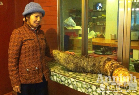 Cách đây ít ngày, khi bắt tay vào đào gốc khoai bên vệ đồi, bà Đoàn Thị Ánh Thơ, ở thôn Thanh Cao, Ngọc Thanh, Phúc Yên, Vĩnh Phúc, không thể ngờ củ khoai lớn đến vậy. Càng đào, bà càng như không tin vào mắt mình. Hì hụi mất nửa ngày, cuối cùng bà Thơ cũng lấy lên được củ khoai khổng lồ...
