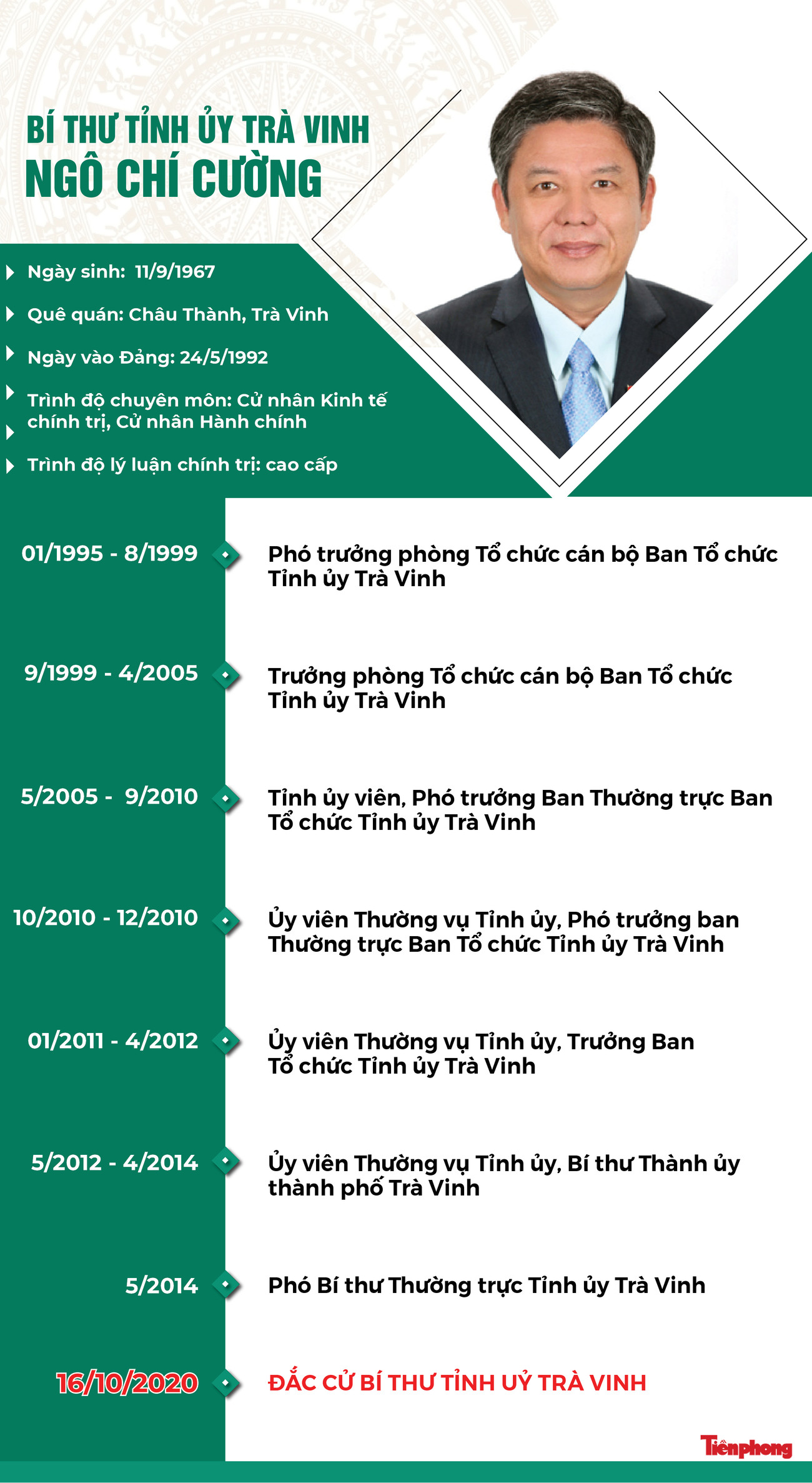 TPO - Ngày 16/10, Đại hội Đại biểu Đảng bộ tỉnh Trà Vinh lần thứ XI đã bầu ông Ngô Chí Cường làm Bí thư Tỉnh uỷ nhiệm kỳ 2020 – 2025.