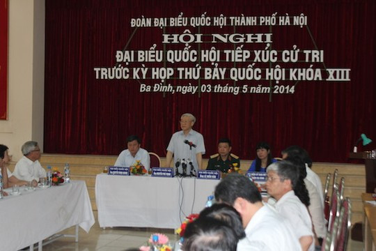 Ngày 3/5, Tổng Bí thư Nguyễn Phú Trọng cùng đại biểu Quốc hội đã có buổi tiếp xúc cử tri tại quận Ba Đình, Hà Nội trước kỳ họp thứ 7 Quốc hội khoá XIII.