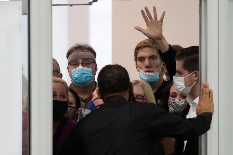 Những người này không được phép vào tòa nhà do các lệnh hạn chế phòng COVID-19.