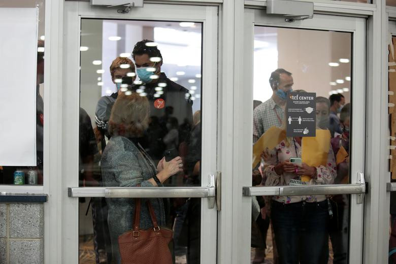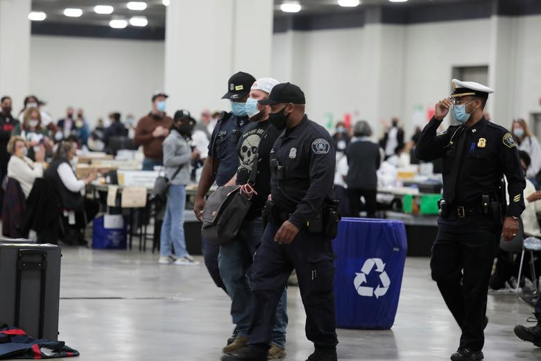 Nhóm cử tri quá khích yêu cầu được vào bên trong tòa nhà Trung tâm TCF ở thành phố Detroit để giám sát quá trình kiểm phiếu, và hô vang “Stop The Vote”.