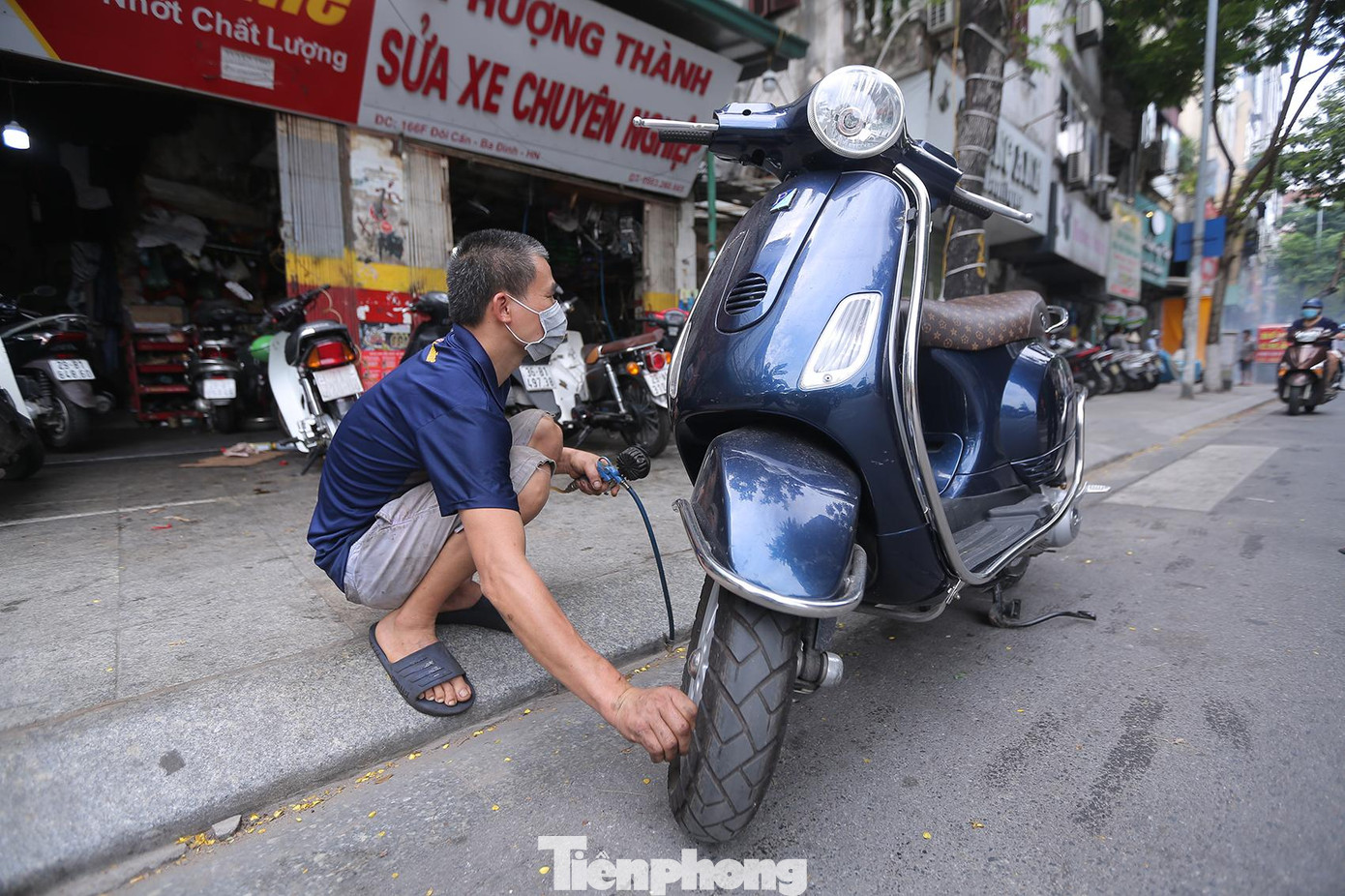 Các cửa hàng sửa chữa trên phố Đội Cấn, Hoa Bằng, Xuân Đỉnh tấp nập khách sửa chữa, bảo dưỡng xe máy.
