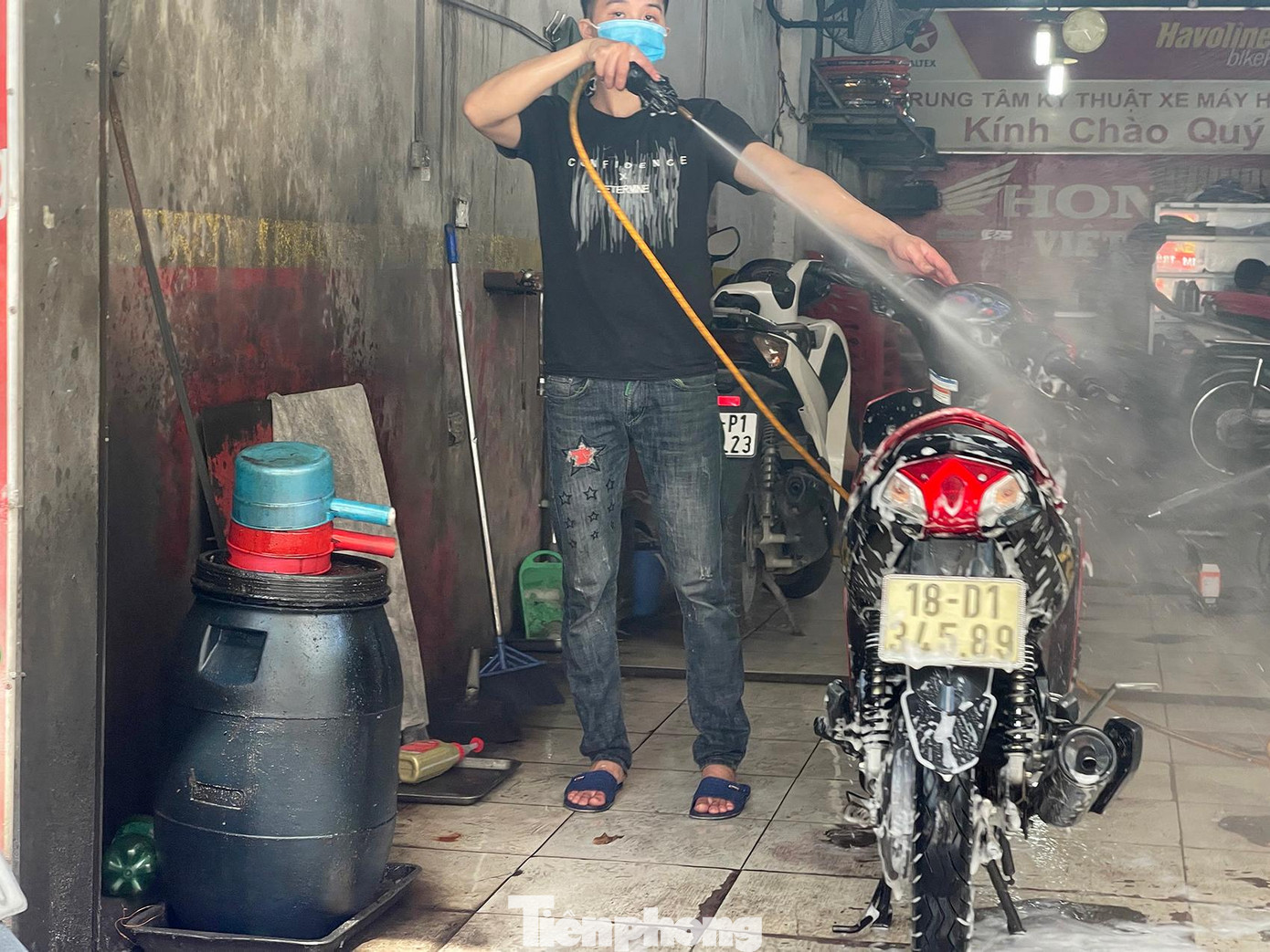 Ngày cuối tuần nên người dân tranh thủ đem xe đi bảo dưỡng, sửa chữa sau thời gian dài không sử dụng.