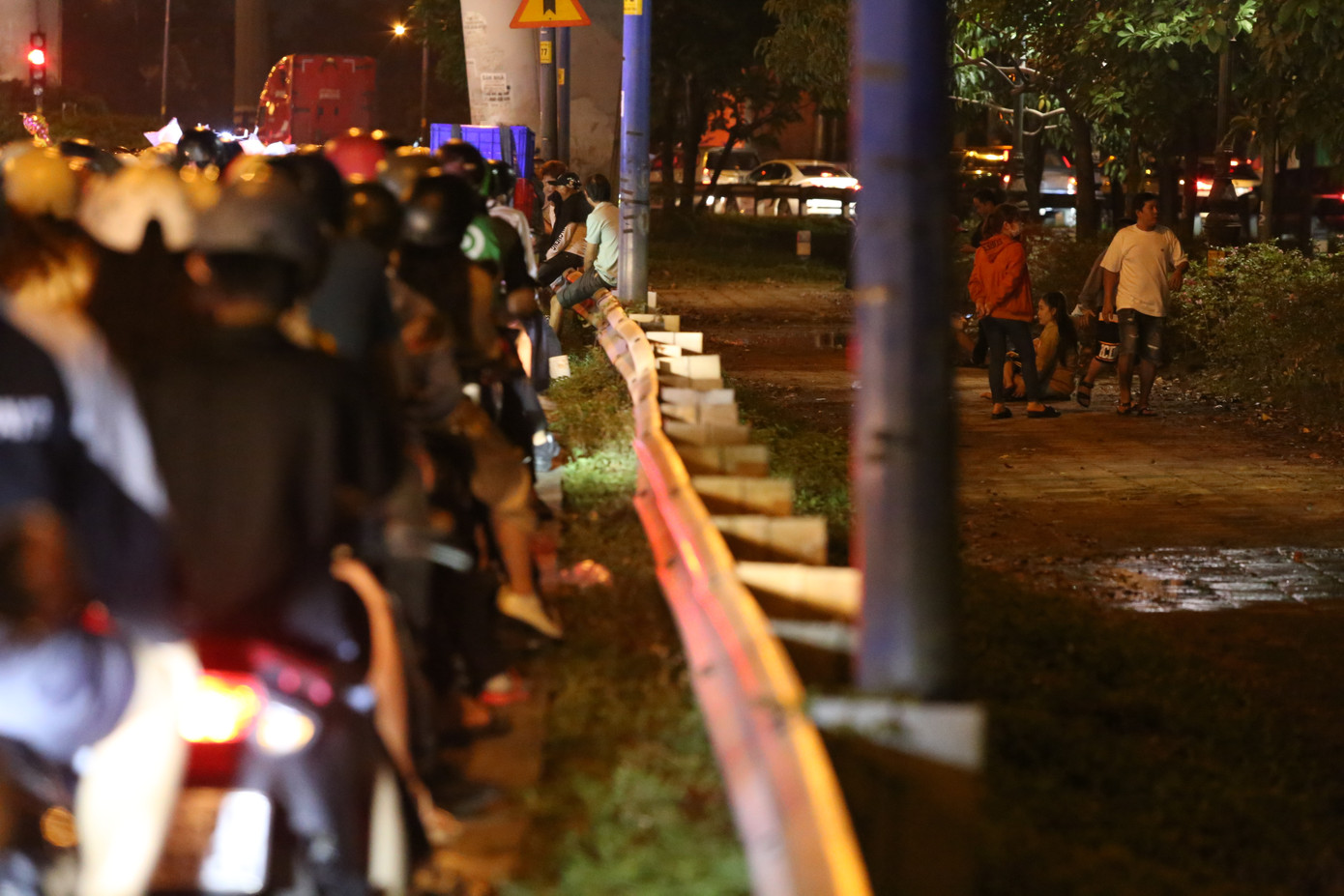 | Dòng xe cộ quá đông nhích từng chút một trên đường lúc gần 2 giờ sáng. |