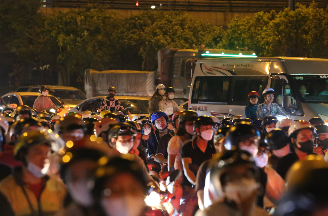 | Cảnh tượng nghìn nghịt người cùng lưu thông hướng về khu vực cửa ngõ phía Đông TPHCM sau đêm giao thừa. |