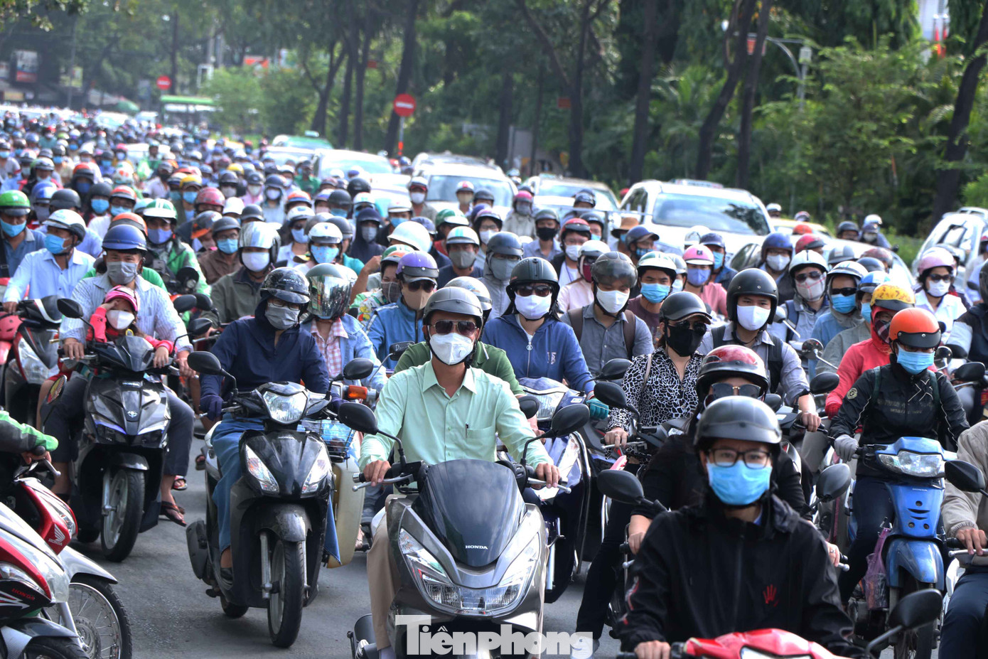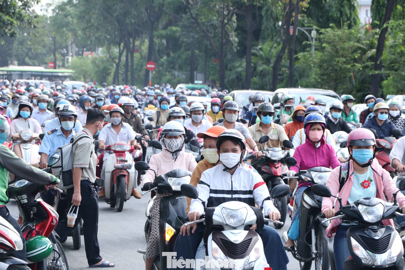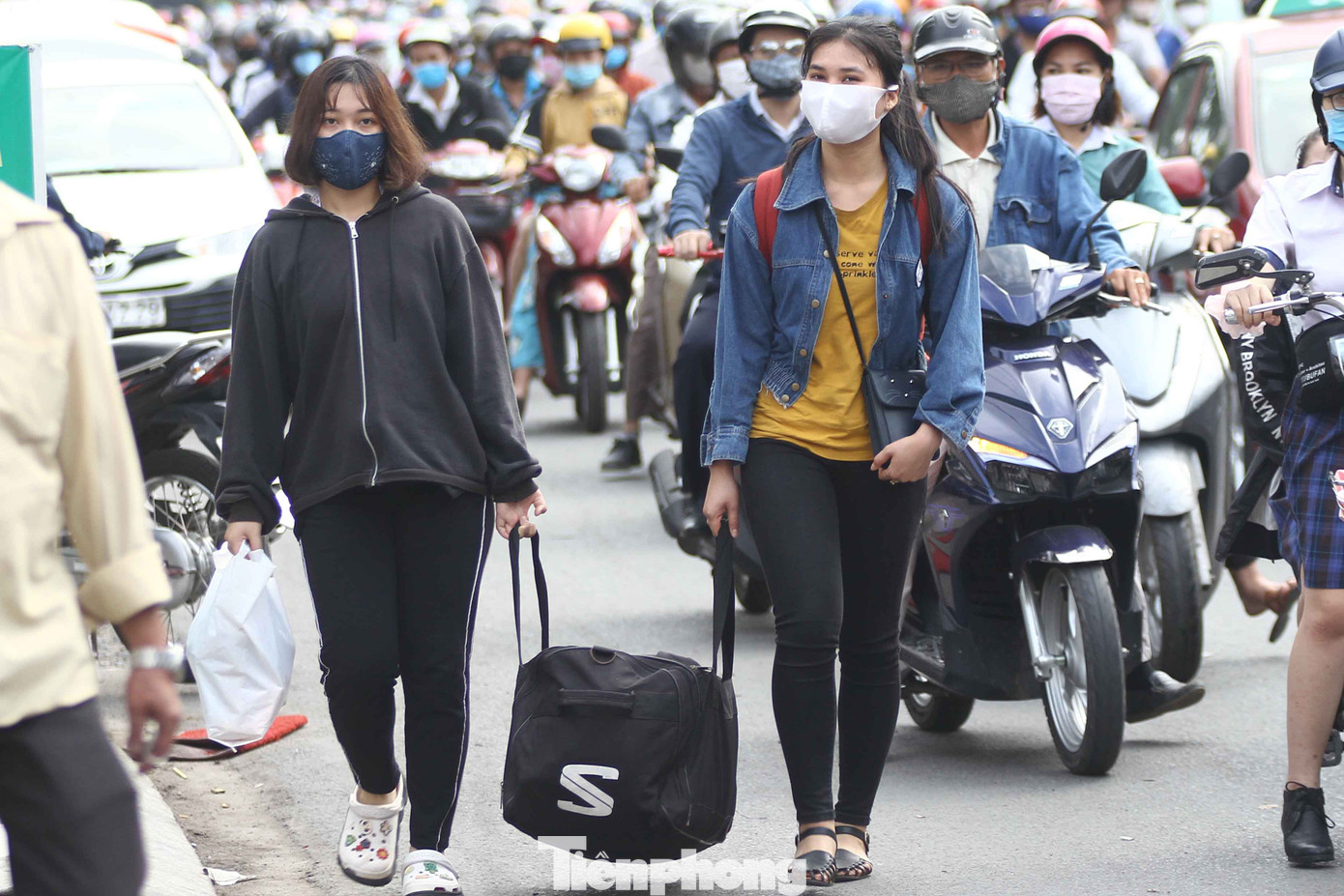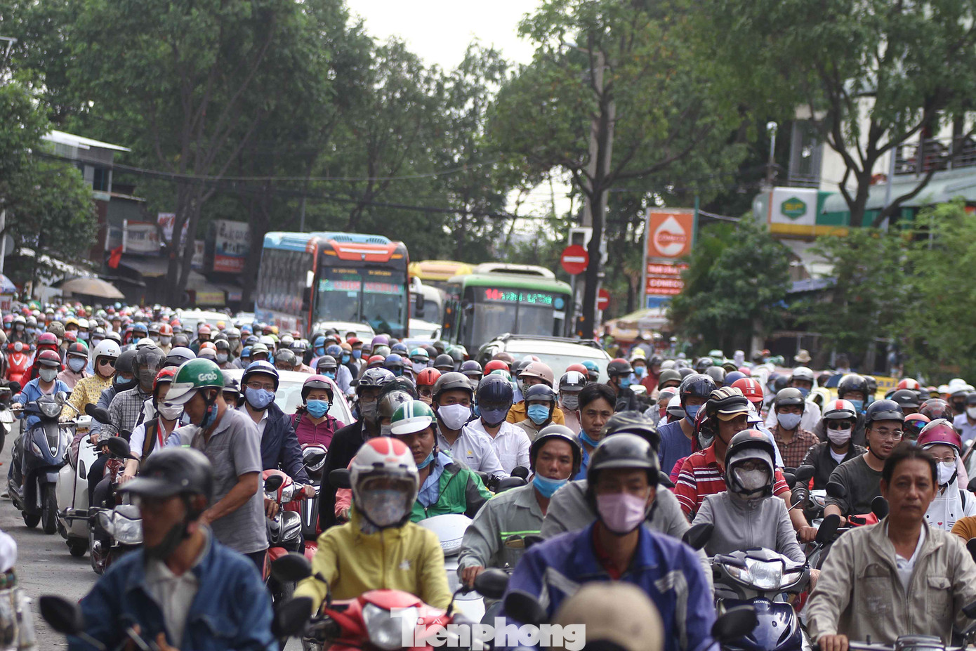 Đặc biệt, tại khu vực xung quanh bến xe Miền Đông (quận Bình Thạnh, TPHCM), dòng người đổ vào trung tâm làm việc kèm theo xe khách vào bến xe khiến nhiều tuyến đường ùn tắc.