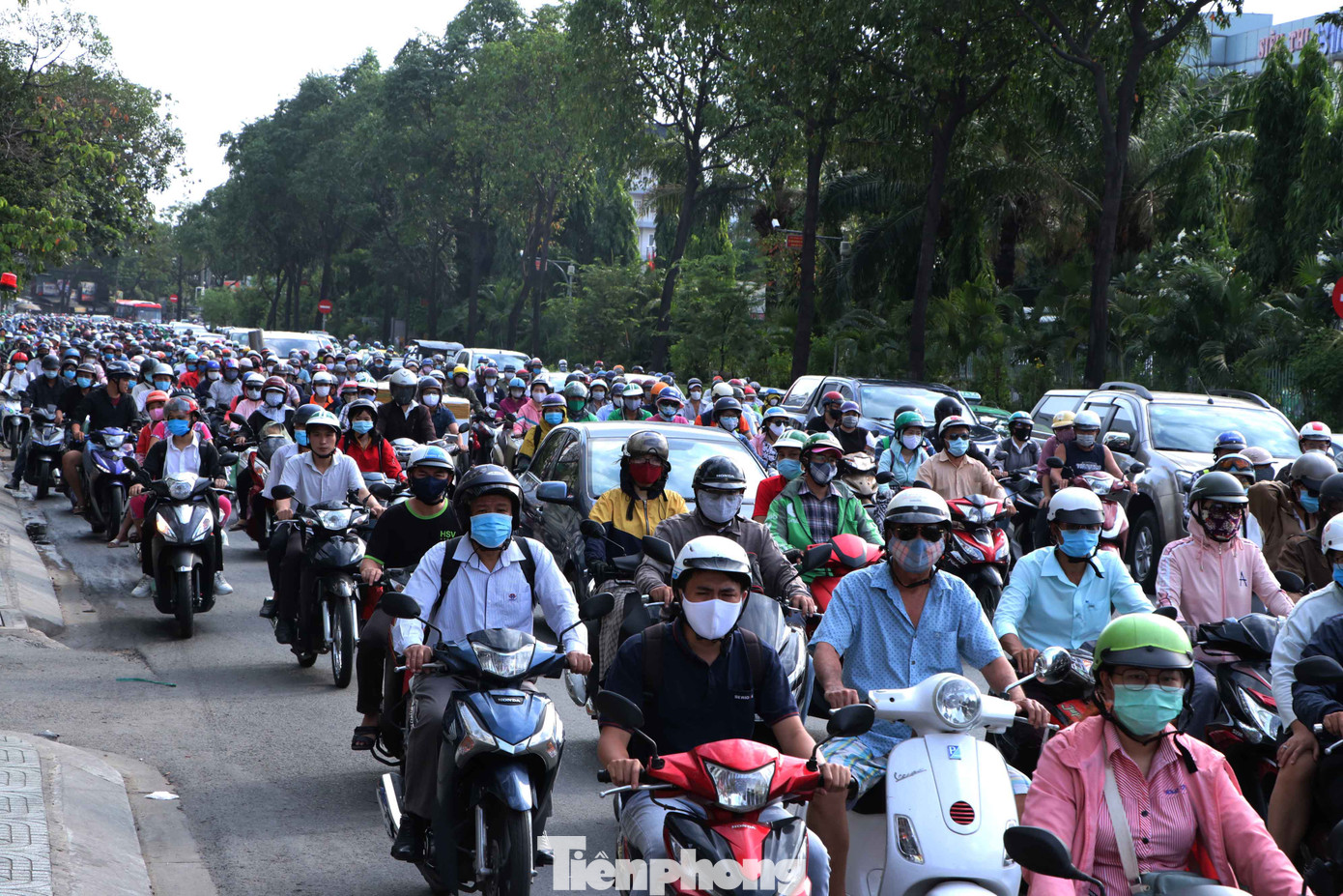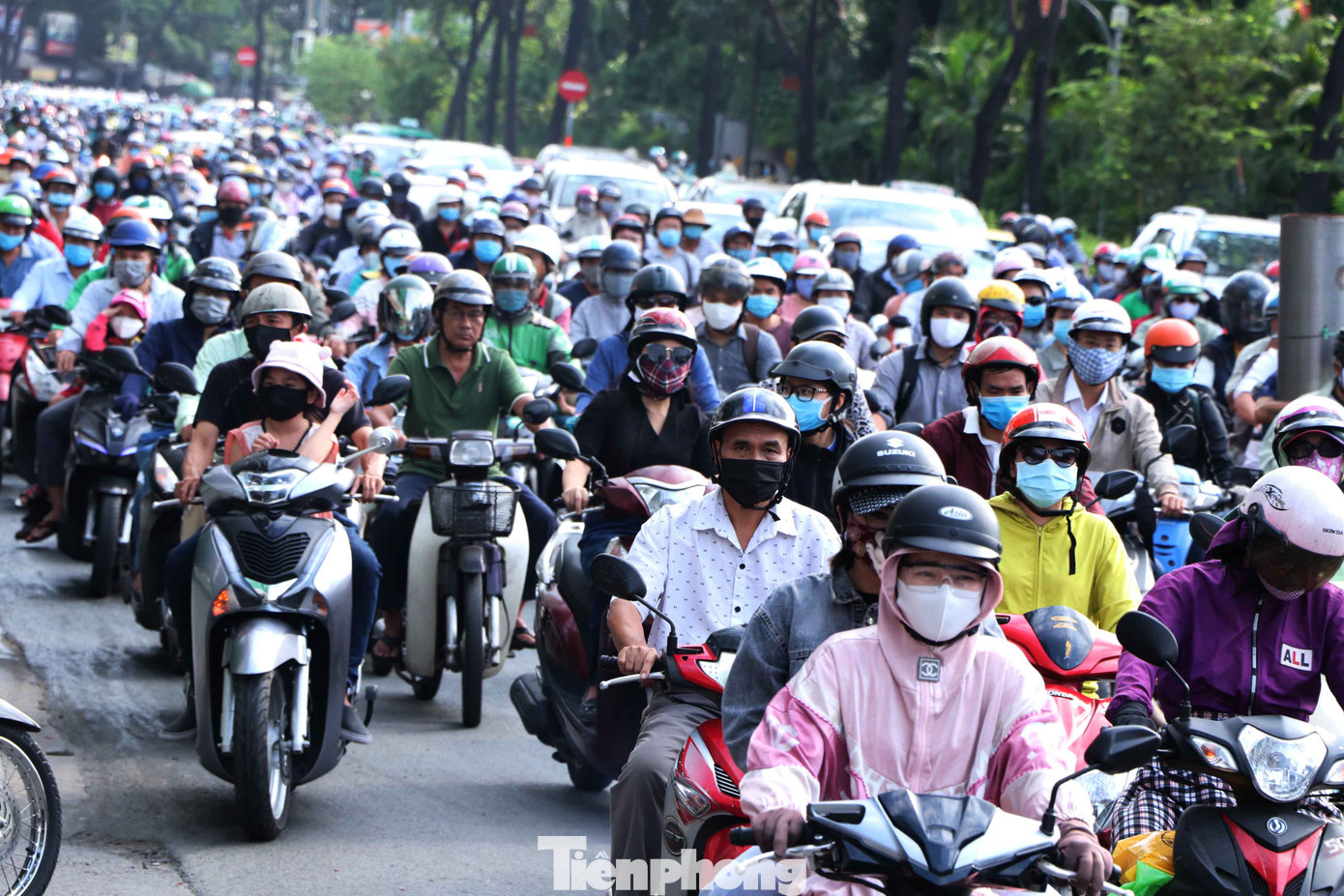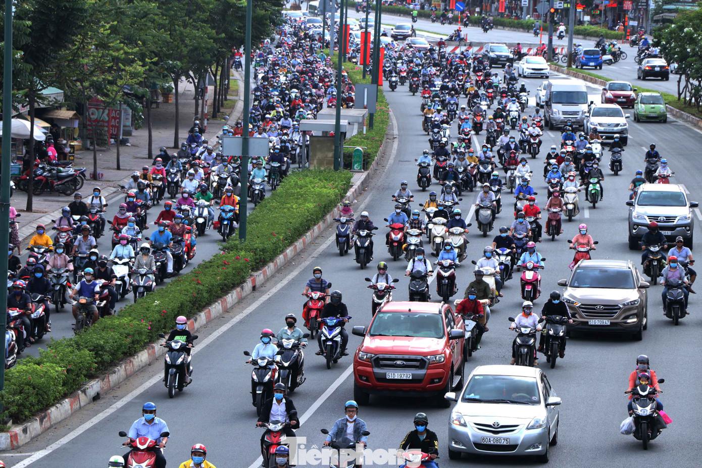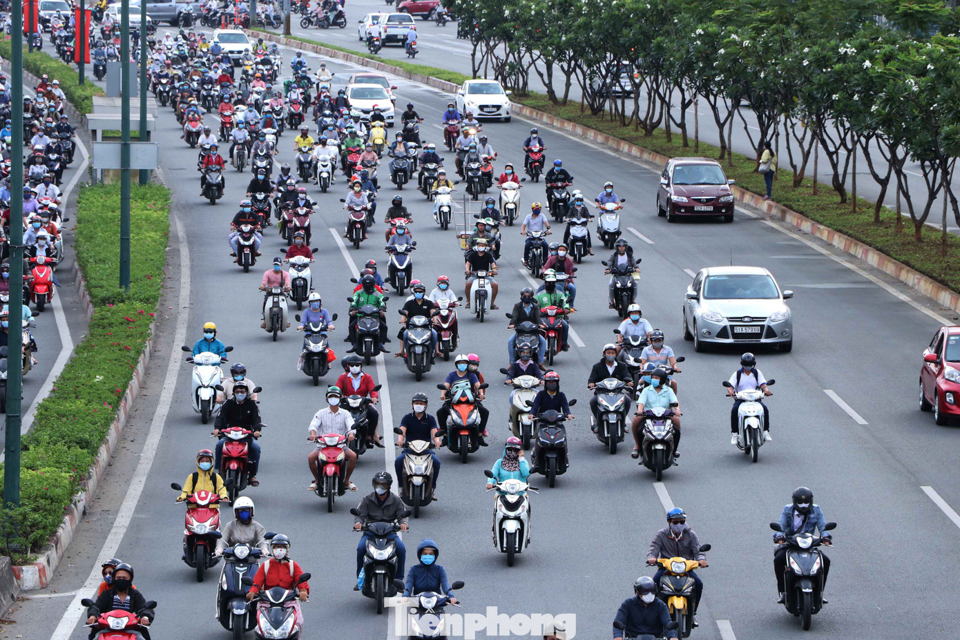 Ghi nhận từ khoảng 6h sáng, dòng xe máy, ô tô từ các tỉnh Đông Nam Bộ đổ vào TPHCM qua tuyến quốc lộ 13, Xa lộ Hà Nội, đường Phạm Văn Đồng... rất đông.