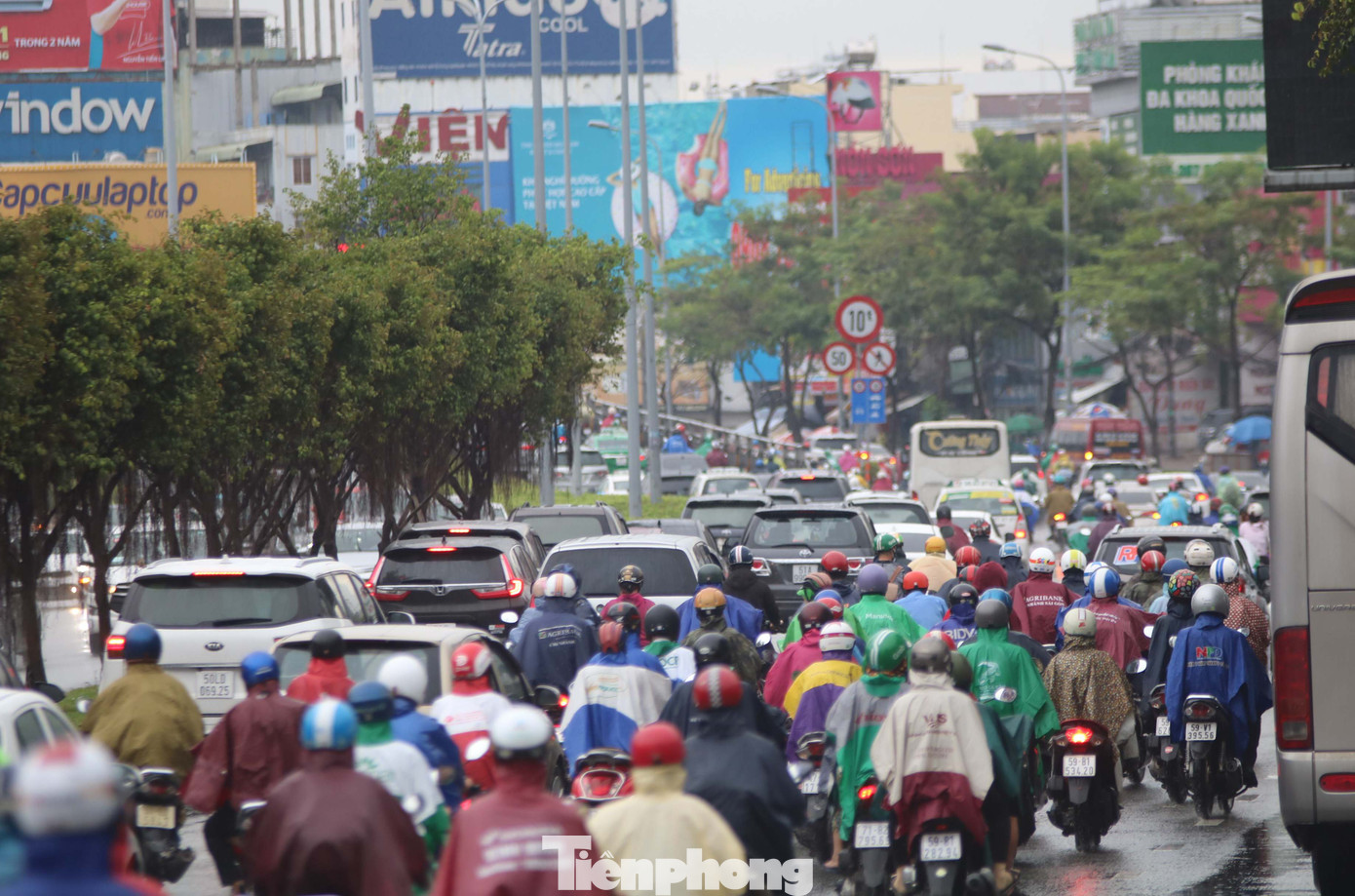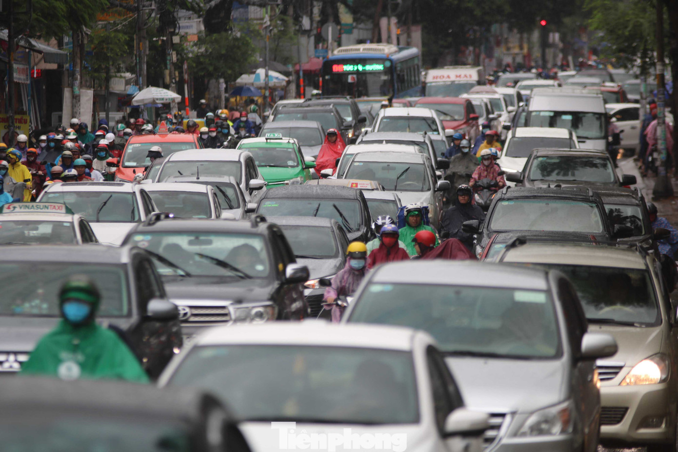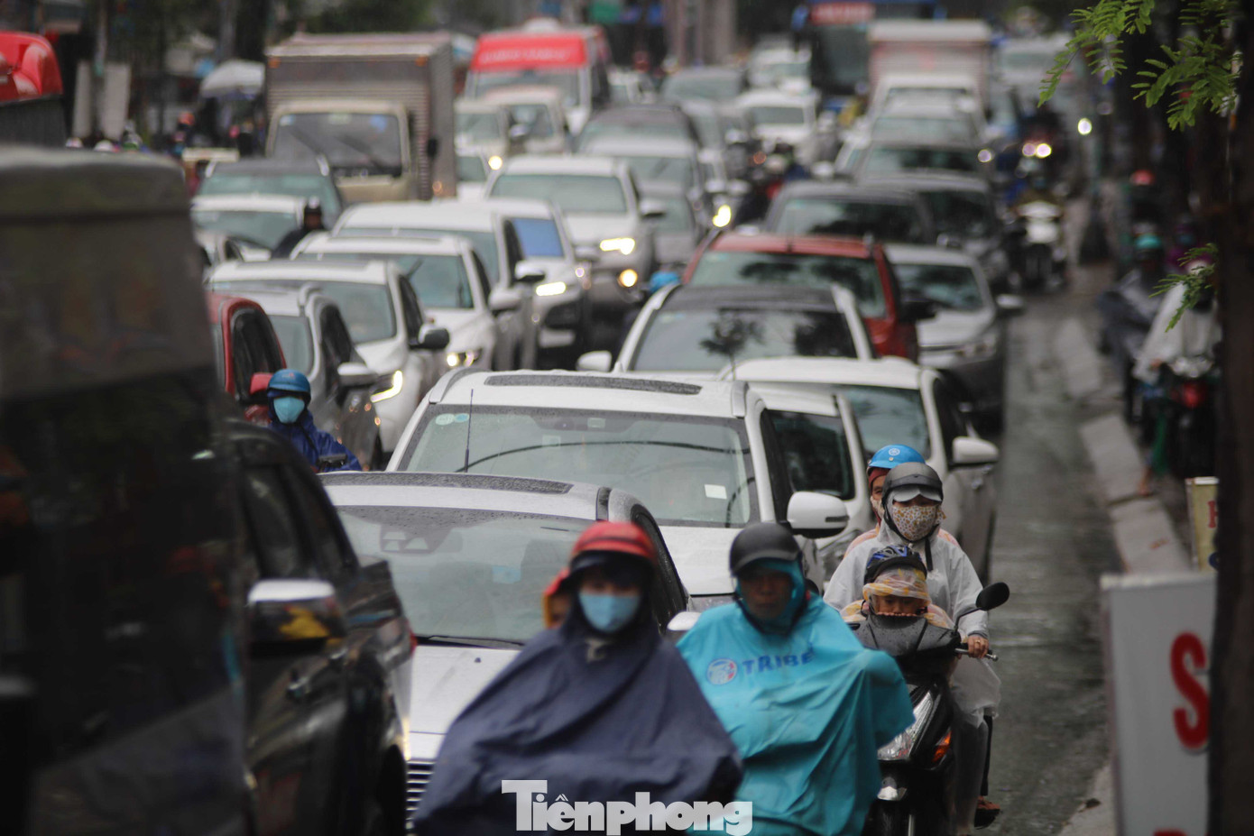 Mưa kéo dài trong khung giờ cao điểm sáng đầu tuần khiến giao thông trên nhiều tuyến đường kẹt xe nghiêm trọng.