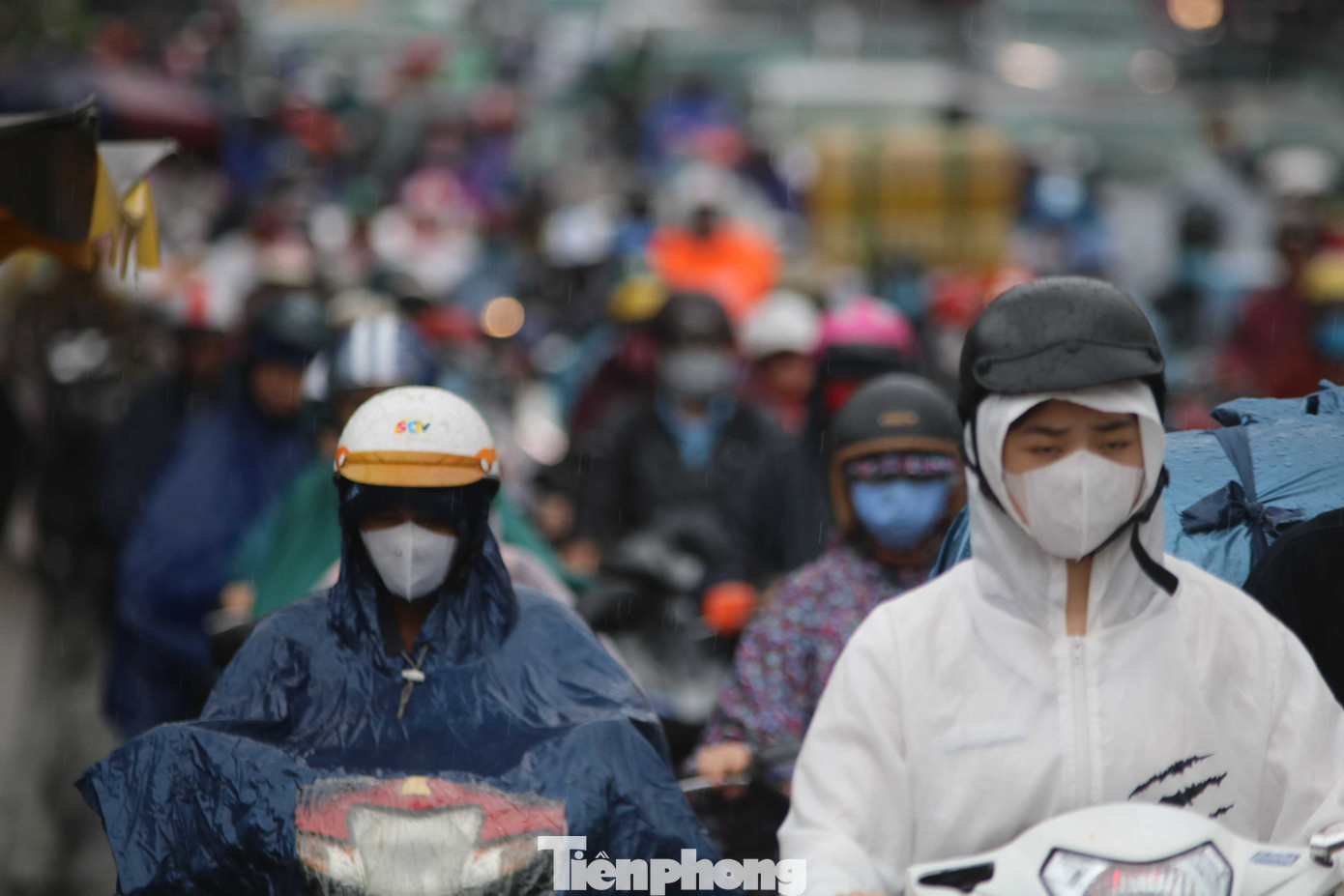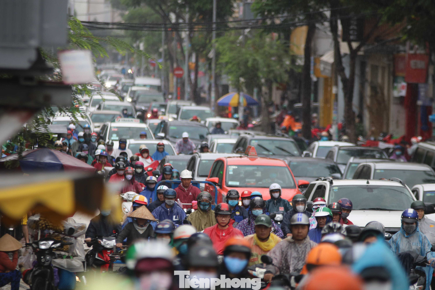 Kẹt xe nghiêm trọng vào giờ cao điểm dưới trời mưa khiến người dân không khỏi mệt mỏi.