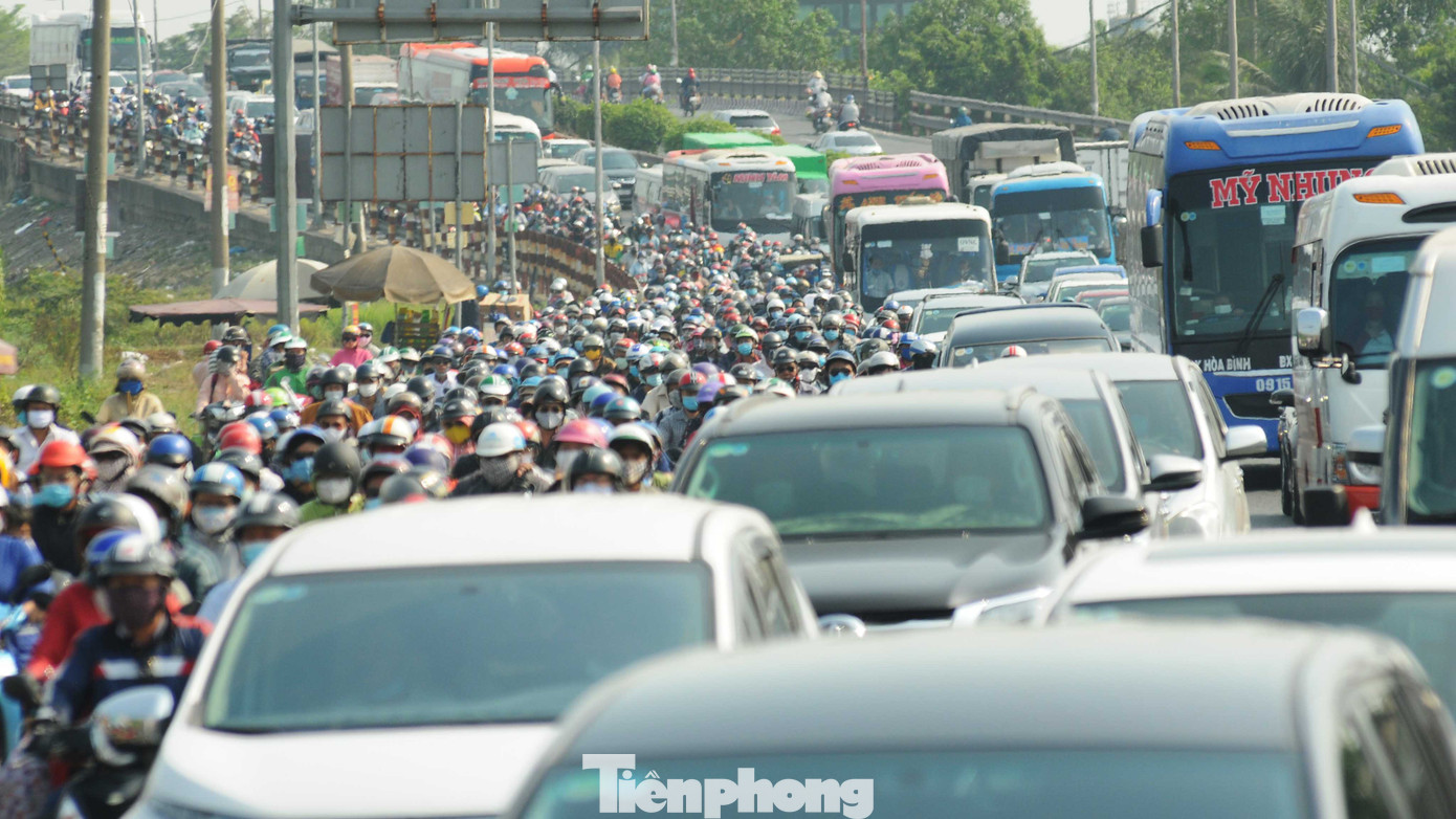 Ghi nhận của phóng viên vào sáng 30/4, dòng người rời TPHCM đi các tỉnh miền Tây và khu vực Đông Nam Bộ khiến nhiều tuyến đường cửa ngõ ùn tắc kéo dài.