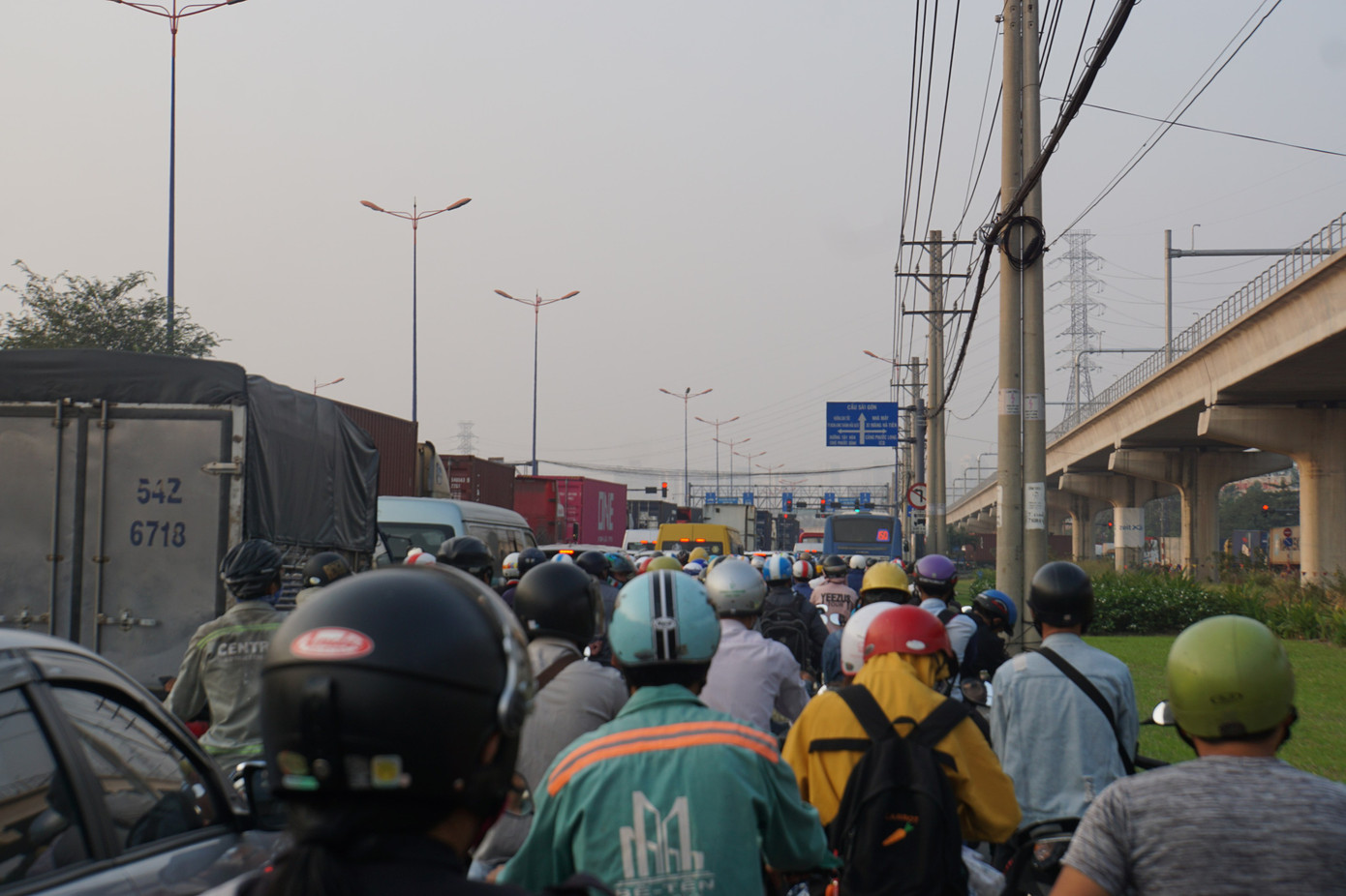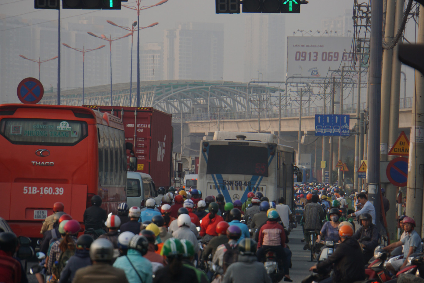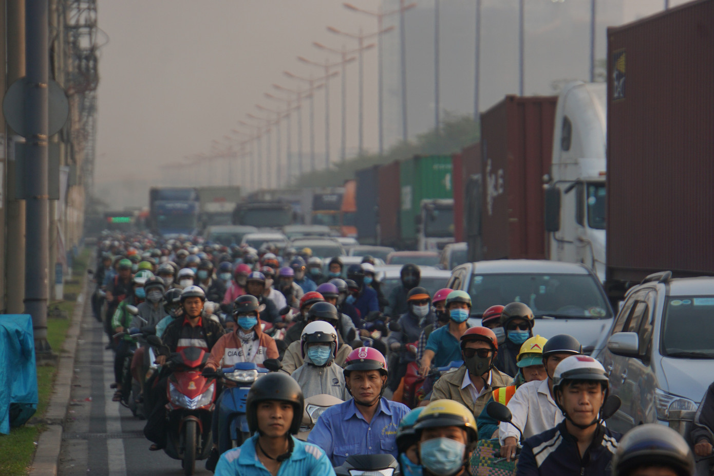 Tình trạng kẹt xe nghiêm trọng nhất là trên xa lộ Hà Nội đoạn từ khu Công nghệ cao quận 9 đến ngã tư Thủ Đức.