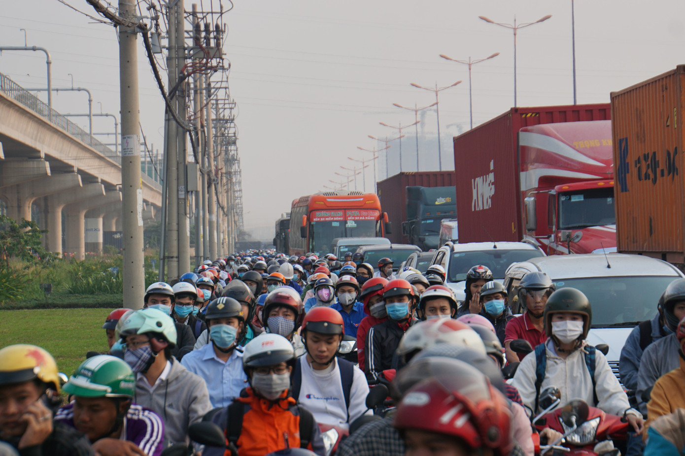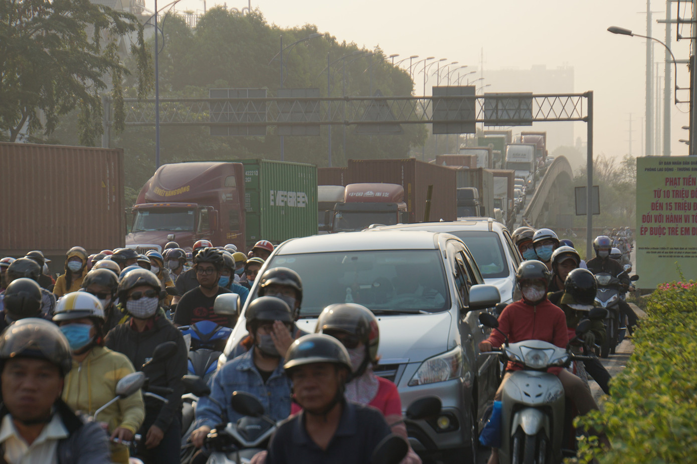 Sáng 17/1 (23 tết), hàng loạt tuyến đường ở cửa ngõ phía Đông TPHCM như xa lộ Hà Nội, Mai Chí Thọ, Đồng Văn Cống, đường dẫn cao tốc TPHCM-Long Thành-Dầu Giây kẹt xe nghiêm trọng.