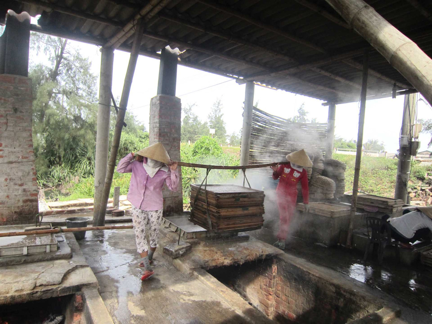 | Những người có sức khỏe đảm trách công việc gánh cá, đứng lò. Sức nóng của lò hấp rất cao, do mỗi lần hấp đến chục mẻ. |