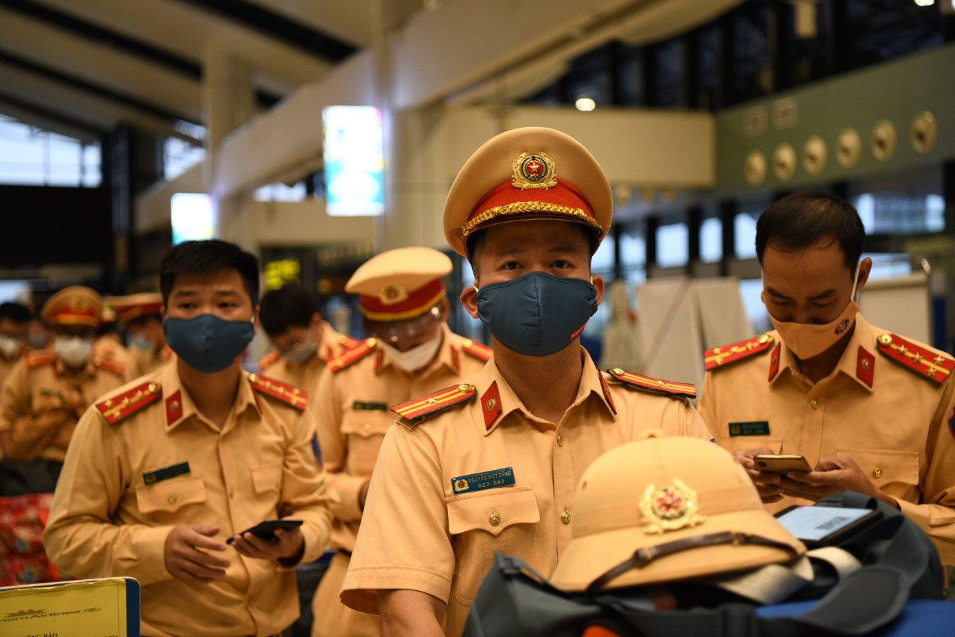 Cụ thể, sáng cùng ngày, tại Sân bay quốc tế Nội Bài, Cục CSGT tổ chức lễ xuất quân, tăng cường cán bộ, chiến sĩ thực hiện nhiệm vụ tại TP Hồ Chí Minh và các tỉnh phía Nam, với nhiệm vụ bảo đảm trật tự an toàn giao thông và phòng chống dịch bệnh tại các cửa ngõ ra vào thành phố.