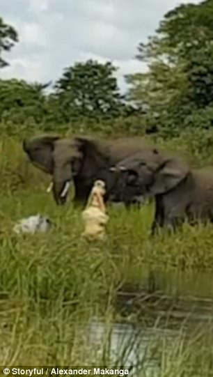 Nhưng sau đó, một chú voi khác trong đàn tiến đến giúp voi con thoát khỏi hàm răng sắc nhọn của cá sấu.