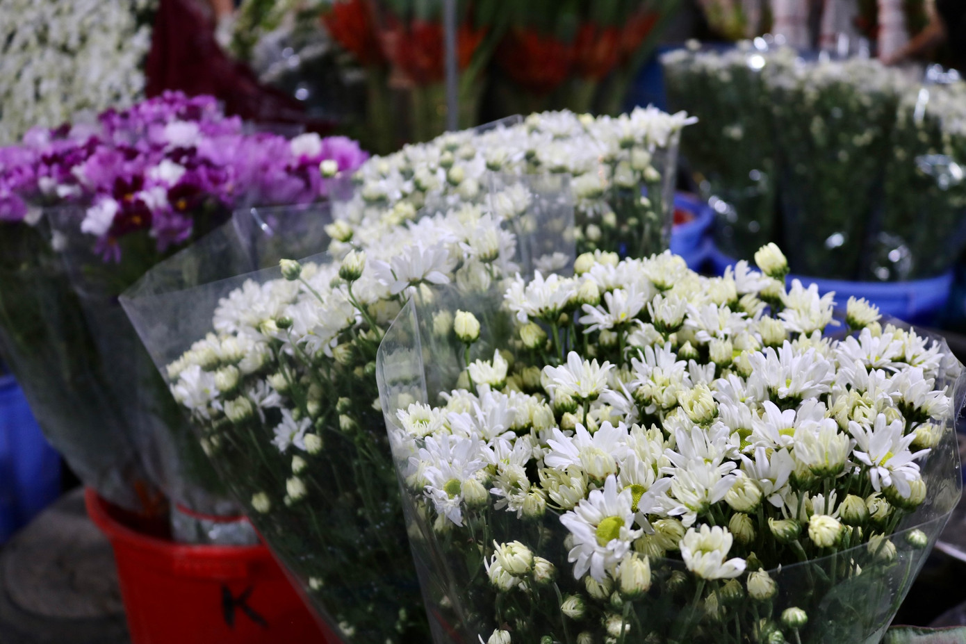 Ông Nguyễn Thế Quang, một tiểu thương tại chợ cho biết: "Hôm nay là ngày đầu tiên nhà tôi nhập loại cúc này về. Bây giờ mới đầu mùa hoa về chưa nhiều lắm, phải tầm một tháng nữa mới có nhiều."