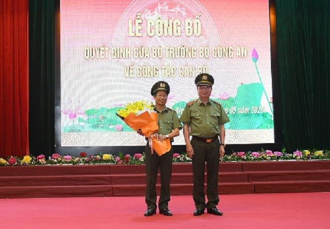 Đồng thời, Thứ trưởng Nguyễn Văn Thành trao quyết định điều động, bổ nhiệm Đại tá Lê Xuân Minh - Phó cục trưởng Cục An ninh mạng và phòng, chống tội phạm sử dụng công nghệ cao Bộ Công an về nhận chức GĐ Công an tỉnh Hòa Bình.