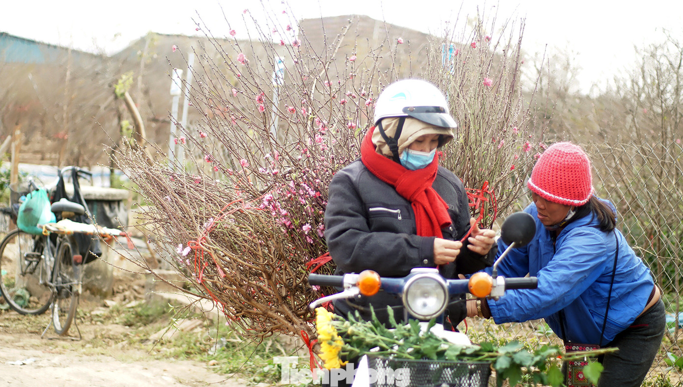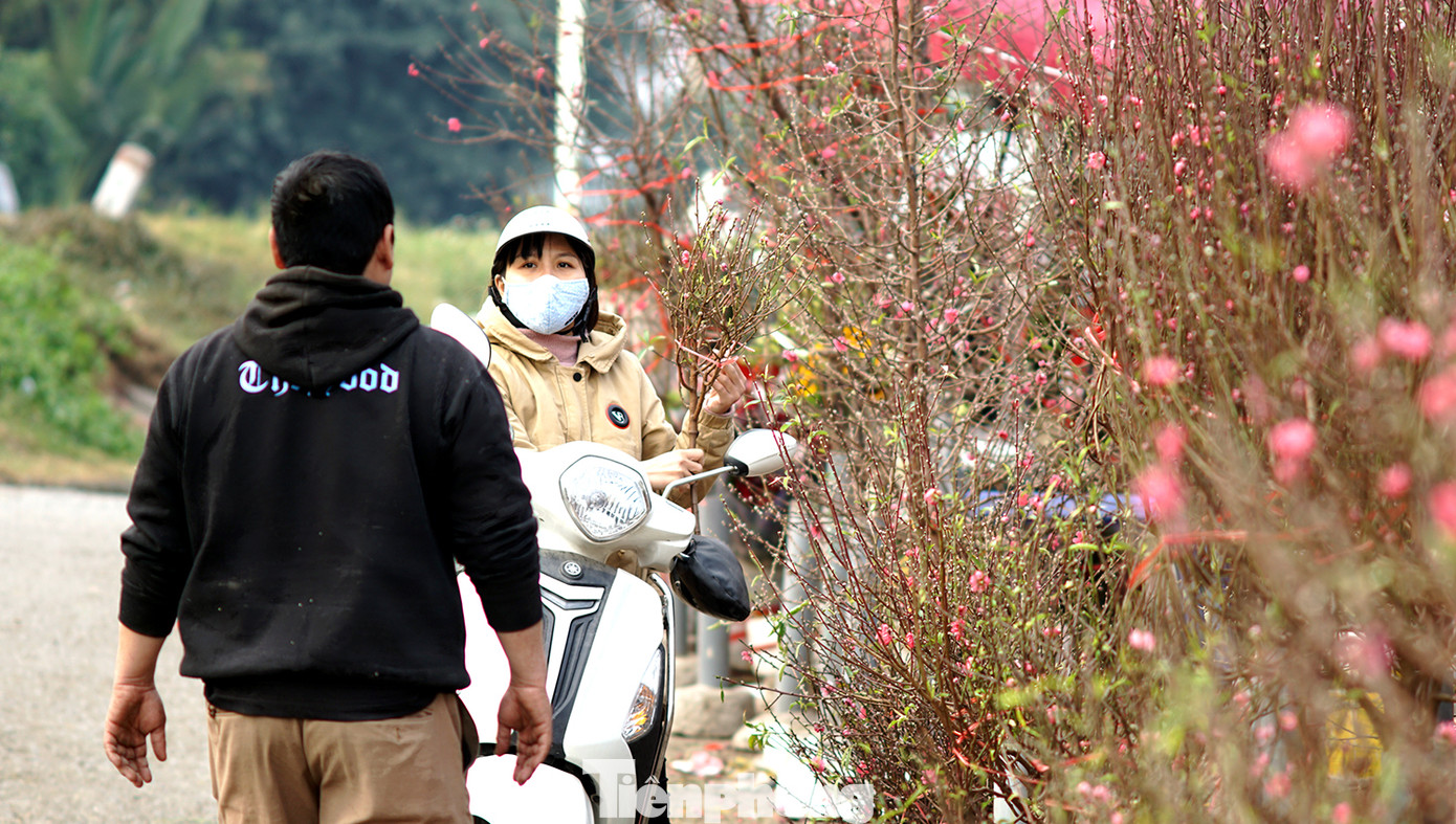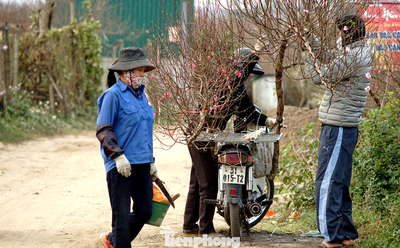 Không chỉ có hoa cúc, đào Nhật Tân cũng hút khách dịp cận Tết. Nhiều người mua đào về bày ban thờ vào ngày 1/12 âm lịch.