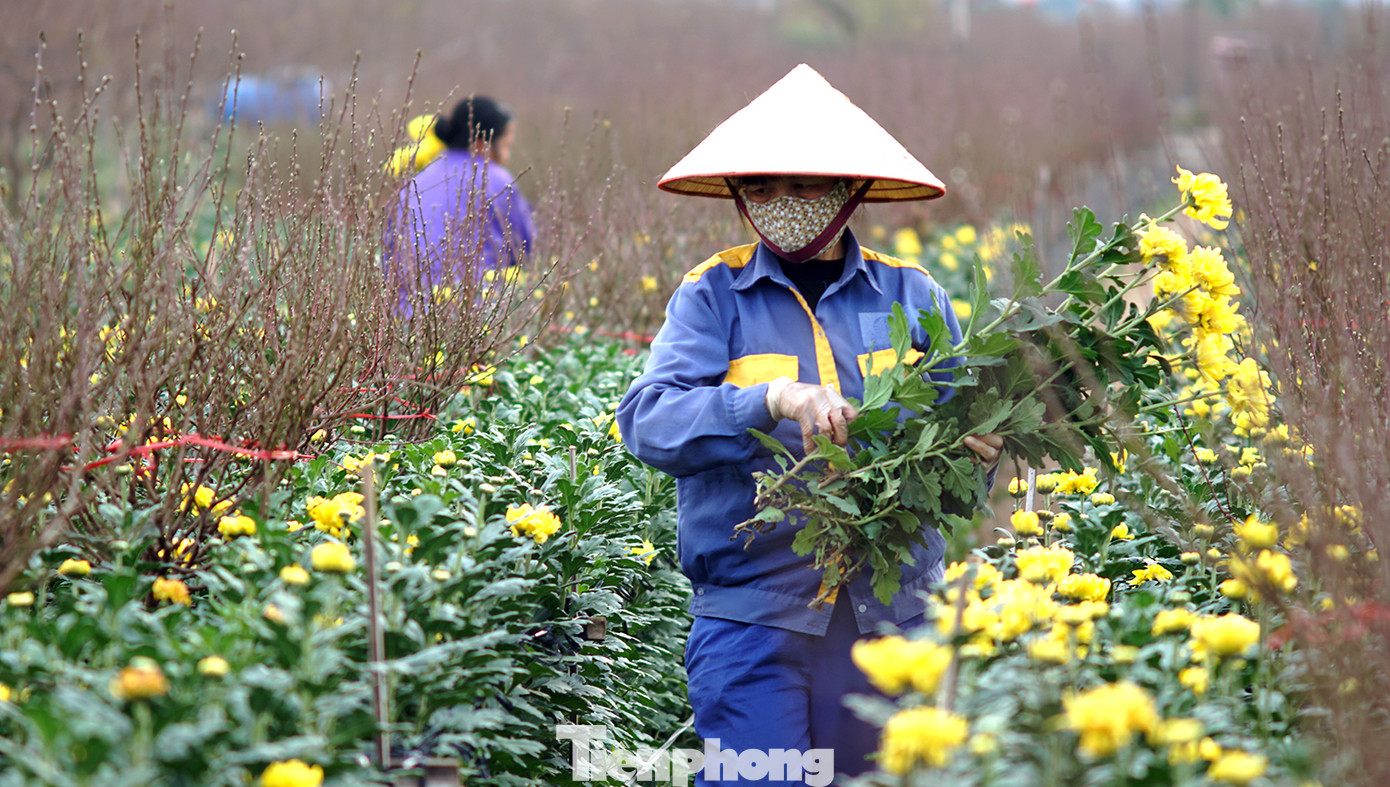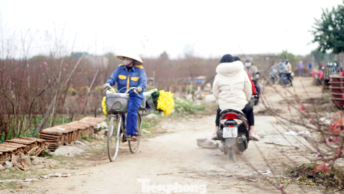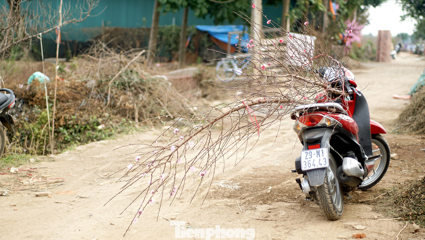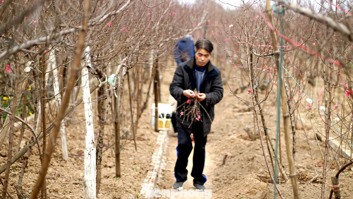Không chỉ có hoa cúc, đào Nhật Tân cũng hút khách dịp cận Tết. Nhiều người mua đào về bày ban thờ vào ngày 1/12 âm lịch.
