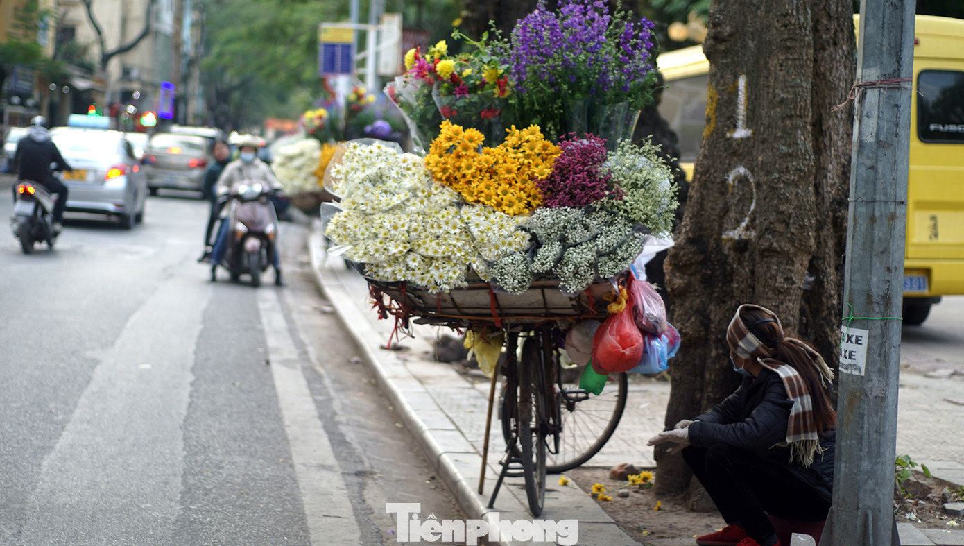 Trên tuyến phố Thụy Khuê, nhiều người bán hàng rong chở theo những chuyến xe hoa sặc sỡ đủ loại.