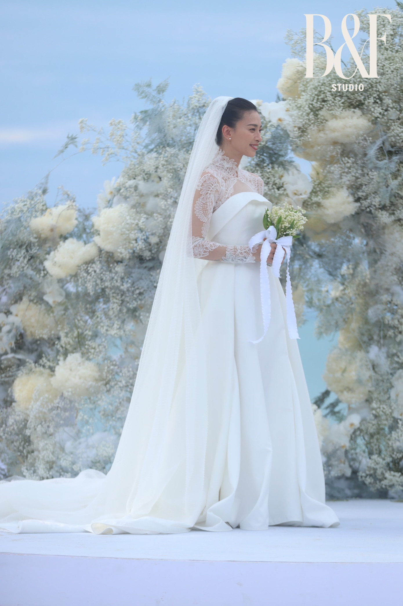 Ngô Thanh Vân cũng chọn một bó hoa linh lan trong hôn lễ riêng tư với Huy Trần bên bờ biển. Chỉ cần điểm xuyết những nhành lá xanh, thắt một sợi ruy băng trắng là Ngô Thanh Vân đã có ngay bó hoa cưới tinh tế.