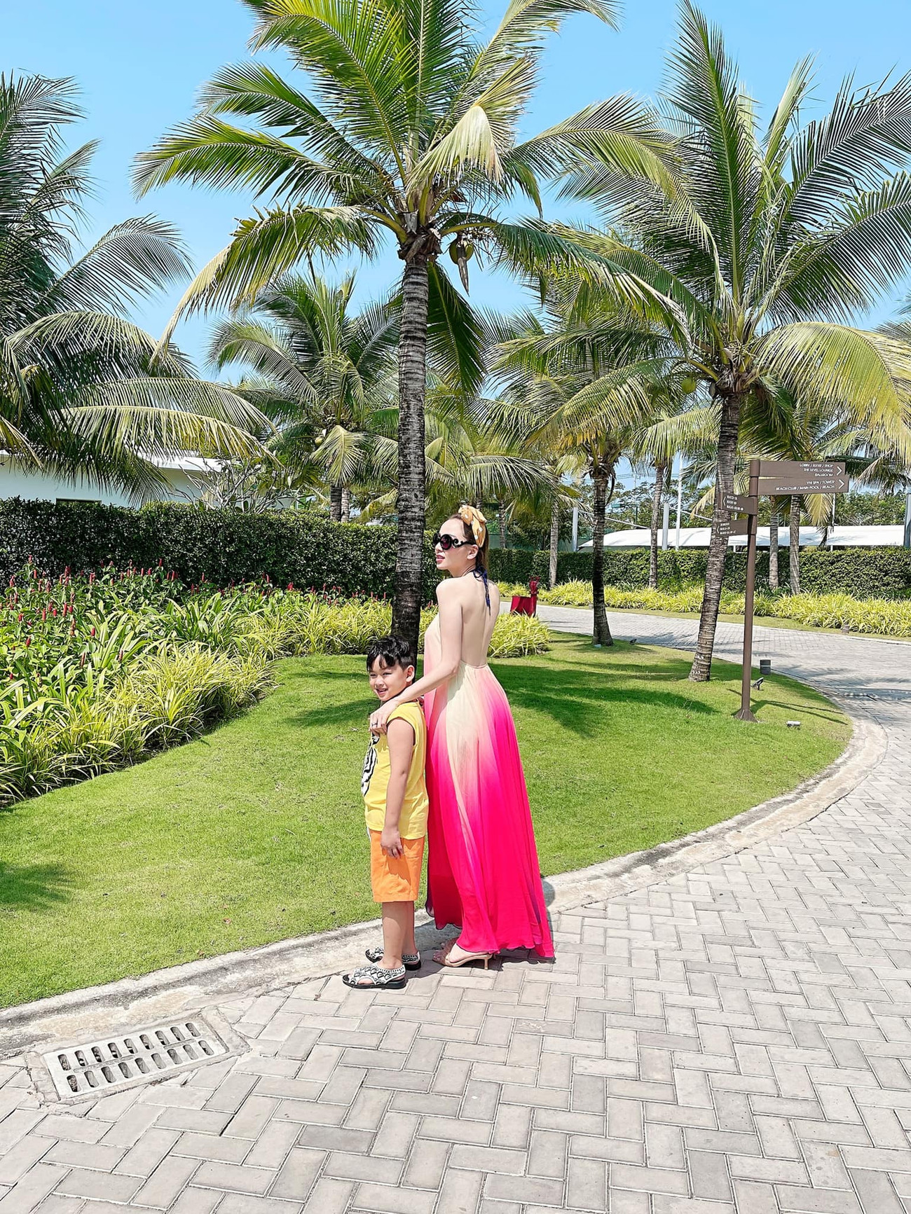 Hoa hậu Diễm Hương khoe vai trần gợi cảm trong bộ váy tông màu nổi bật.