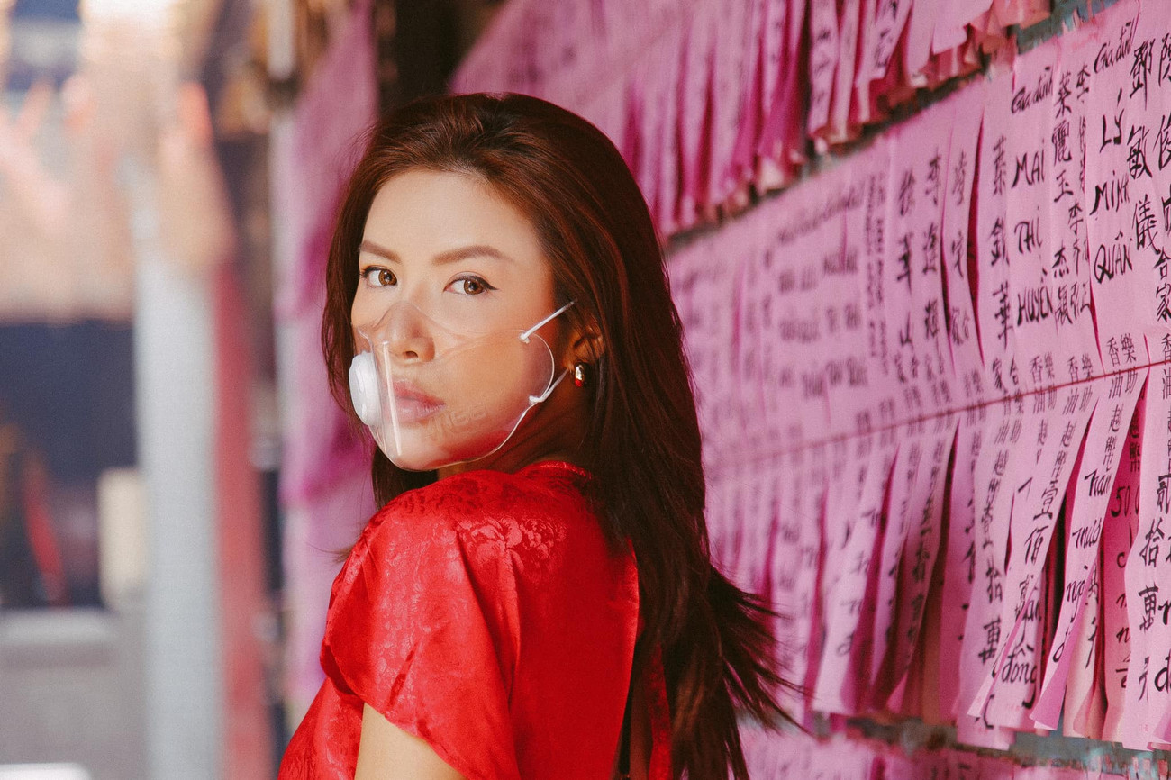 Minh Tú đeo khẩu trang trong suốt khi đi du Xuân ngày mùng 5 Tết.