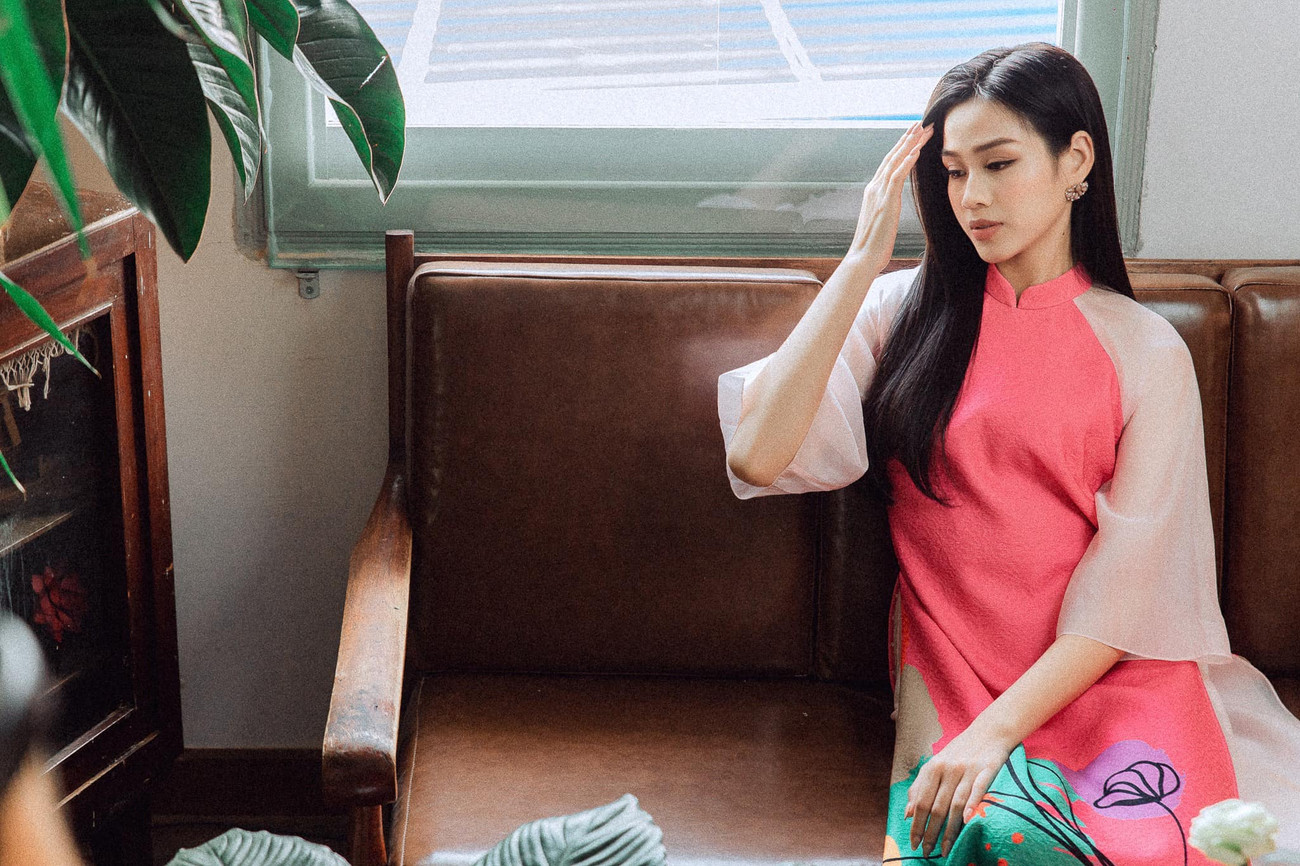 Hoa hậu Đỗ Thị Hà đẹp nền nã và duyên dáng khi lựa chọn tà áo dài cách tân màu hồng thanh lịch.