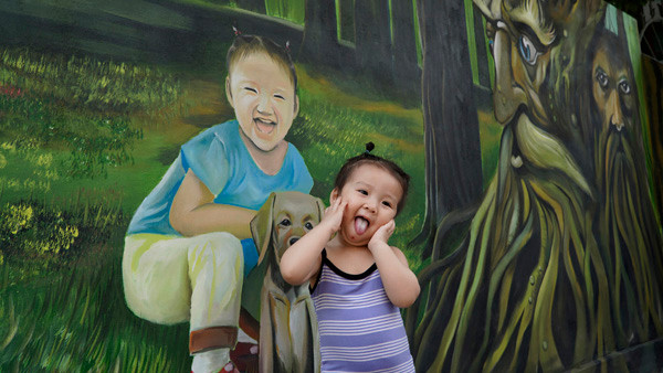 Một số nhân vật trong bức bích hoạ chính là người dân địa phương. Họ không khỏi thích thú, tự hào khi hình ảnh của mình được lưu lại trên những bức hoạ lớn. Trong ảnh Bé Trần Khả Di (Milk), nguyên mẫu của bức bích hoạ ngay gần nhà