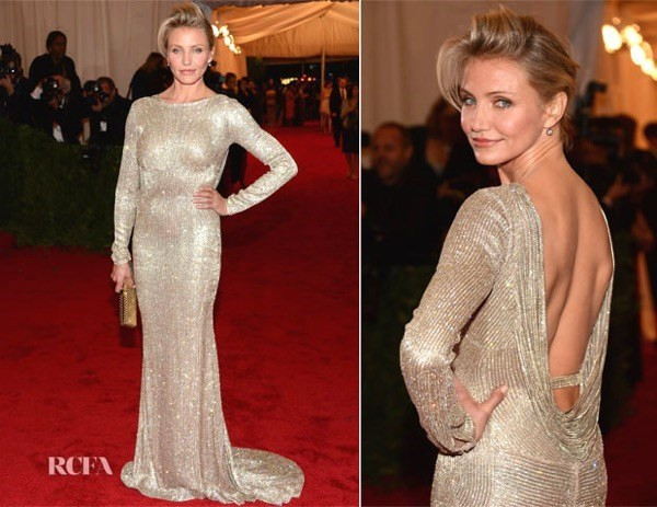 Nữ diễn viên Cameron Diaz diện chiếc váy của thương hiệu Stella McCartney với phần tay áo dài đơn giản, trang nhã, nhưng vẫn khéo léo khoe được tấm lưng trần. (Nguồn: Popsugar, Just Jared)