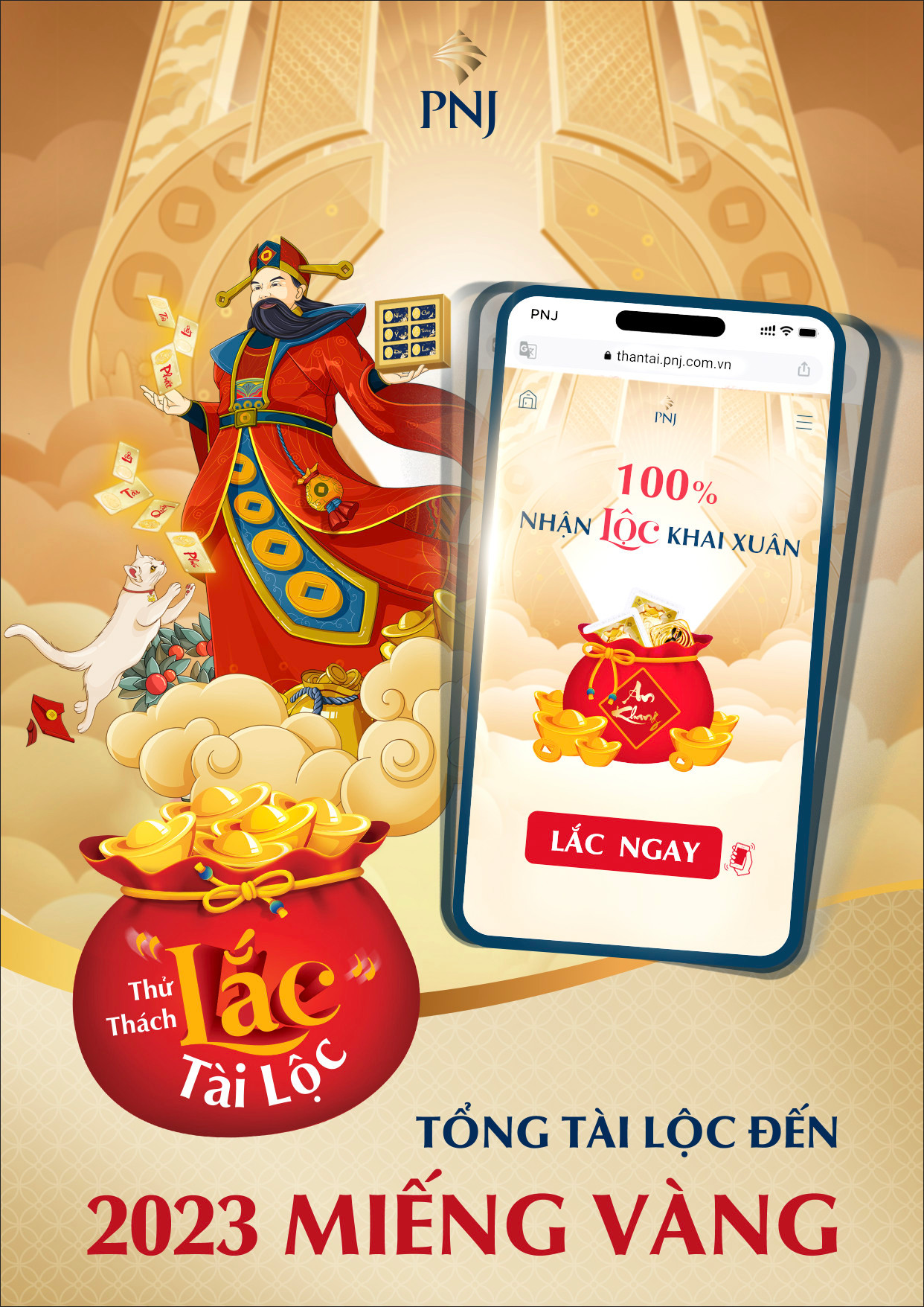 “Thử Thách Lắc Tài Lộc” diễn ra từ ngày 15/1/2023 – 1/2/2023. Tham gia ngay: Lắc Tài Lộc tại: https://thantai.pnj.com.vn/