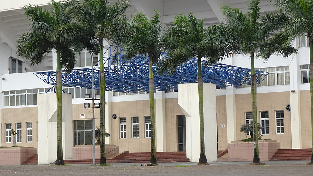 Cung thể thao Quần Ngựa có diện tích khá lớn, nằm ngay mặt đường Văn Cao, thuận tiện cho giao thông, đi lại. Ảnh: Hoàng Mạnh Thắng