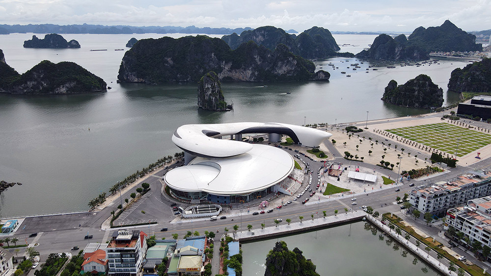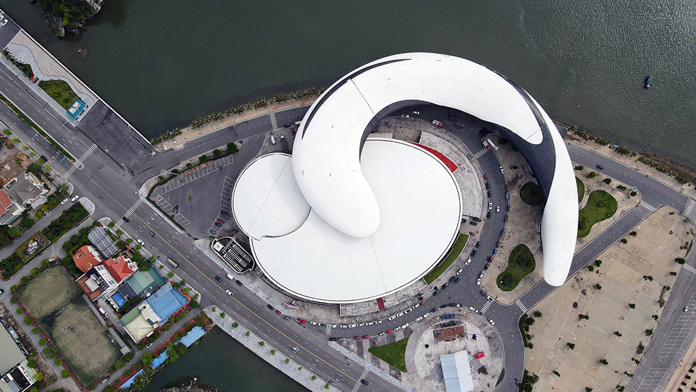Công trình gồm 2 khối, liên kết với nhau bằng hệ thống thang máy, thang cuốn và thang bộ. Khối thứ nhất hình con ngọc trai có 2 tầng sàn dùng để tổ chức các sự kiện, hội chợ, triển lãm và trưng bày quy hoạch vùng. Khối thứ hai có hình một con cá heo khổng lồ với chiều dài 320m, chiều rộng có chỗ tới 45m dùng để trưng bày các đồ án quy hoạch, những công trình kiến trúc, tâm linh tiêu biểu.